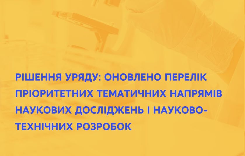 9 травня 2023 року, на засіданні Кабінету Міністрів України прийнято зміни до постанов Кабінету Міністрів України від 7 вересня 2011 р. № 942 і від 22 серпня 2018 р. № 641, відповідно до яких оновлюється перелік пріоритетних тематичних напрямів наукових досліджень і науково-технічних розробок з урахуванням потреб періоду воєнного стану та відновлення України від наслідків війни.