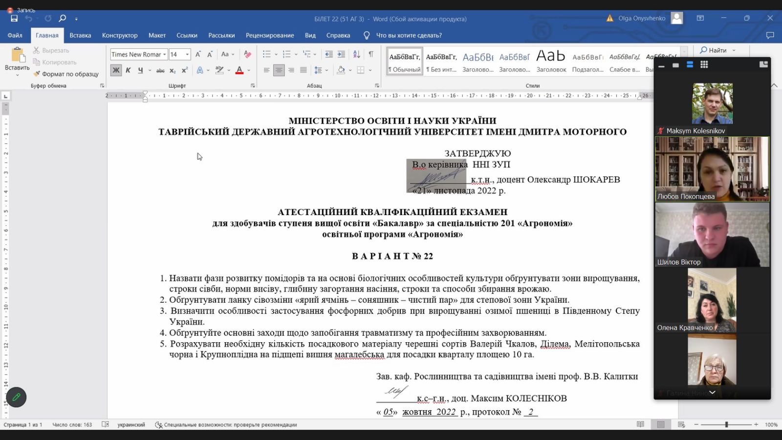 14 лютого 2023 року відбувся комплексний кваліфікаційний екзамен для здобувачів першого (бакалаврського) рівня вищої освіти зі спеціальності 201 “Агрономія” у Навчально-науковому інституті загальноуніверситетської підготовки.