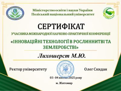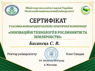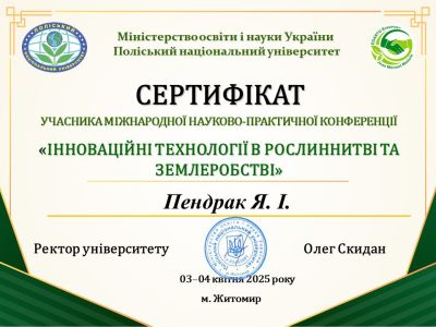 03 квітня 2025 року у Поліському національному університеті відбулася Міжнародна науково-практична конференція «ІННОВАЦІЙНІ ТЕХНОЛОГІЇ В РОСЛИННИЦТВІ ТА ЗЕМЛЕРОБСТВІ».