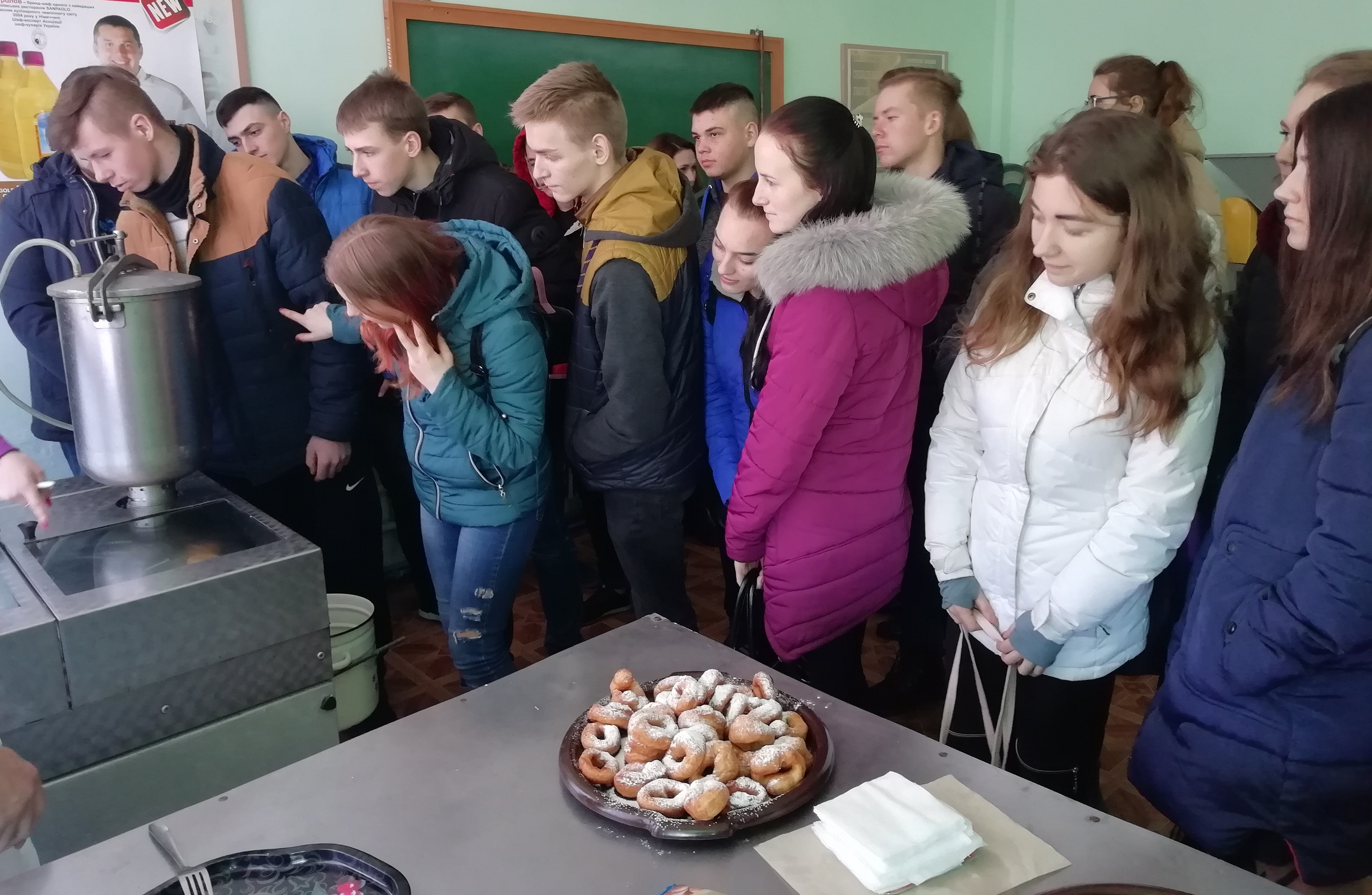 Школярі відвідали лабораторію “Навчальне кафе”, в якій їх гостинно зустріла зав. кафедрою харчових технологій та готельно-ресторанної справи проф. Прісс О.П., а студенти спеціальності «Готельно-ресторанна справа» пригостили солодкими сюрпризами, що приготували власноруч.