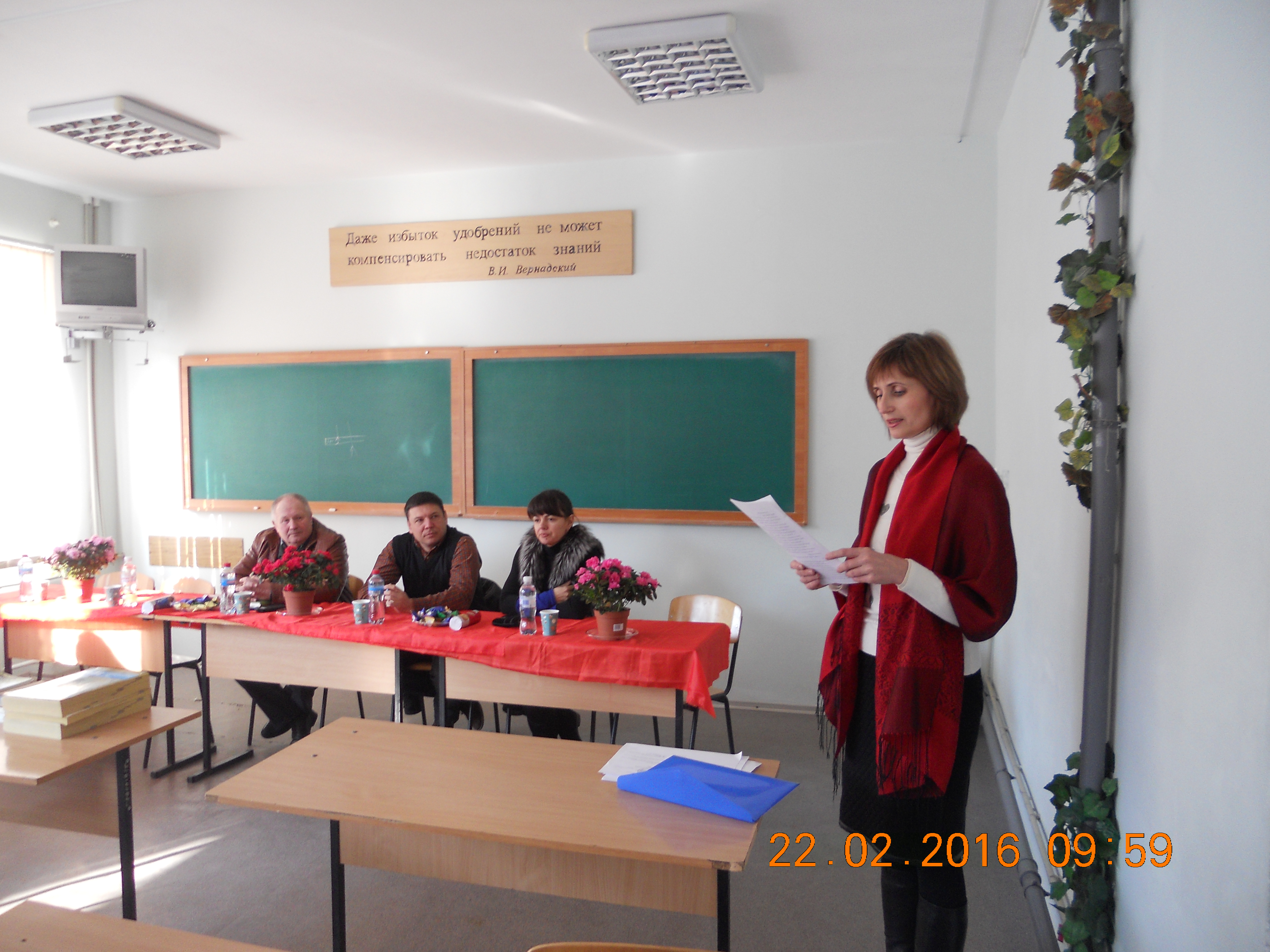До складу комісії входили: д.с.- г.н, старший науковий співробітник, завідувач лабораторії агротехніки олійних культур НААНУ Поляков О. І., д.с.- г.н, професор кафедри рослинництва Калитка В. В., к.с.- г.н, завідувач кафедри рослинництва Тодорова Л. В., к.т.н, доцент кафедри охорони праці та безпеки життєдіяльності Гранкіна О.В., к.с.- г.н, доцент кафедри технології переробки та зберігання продукції сільського господарства Сердюк М. Є.