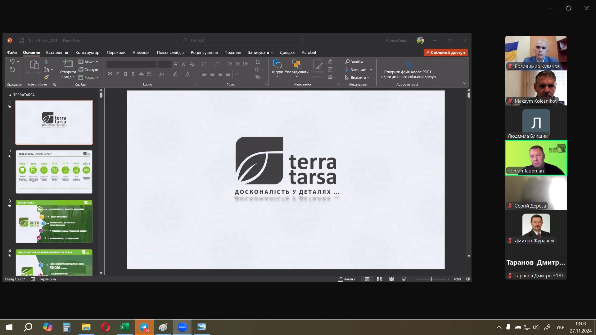 В рамках роботи Вищої школи педагогічної майстерності ТДАТУ кафедра рослинництва та садівництва ім. проф. В.В. Калитки 27 листопада 2024 р. провела гостьову лекцію. До заходу був запрошений менеджер кампанії «ТерраТарса Юкрейн» Роман Таупман, який представив лекцію на тему «Як допомогти рослинам реалізувати генетичний потенціал». Лекція зібрала понад 60 слухачів серед яких були присутні викладачі, науковці та здобувачі вищої освіти університету, усі зацікавлені в агрономії та новітніх агротехнологіях. До уваги присутніх спікер представив інформацію щодо особливостей живлення сільськогосподарських культур, можливості корекції живлення за допомогою сучасних добрив, біостимуляторів та антистресових препаратів. Лекція викликала зацікавленість та жваву дискусію з боку аудиторії.