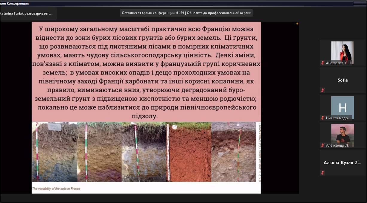 Потім, завдяки старанням студентів та їх прагненню у пізнанні по-справжньому захоплюючого світу ґрунтів, ми відвідали Францію. І відкрили її зовсім по-новому. Не лише Ейфелевою вежею пишаються французи, а й ґрунтами – бурими лісовими, які місцеві жителі називають «лимонними» (Турак Катерина). А до болгарських «Terra rossa» помандрували з Дідиком Дмитром.