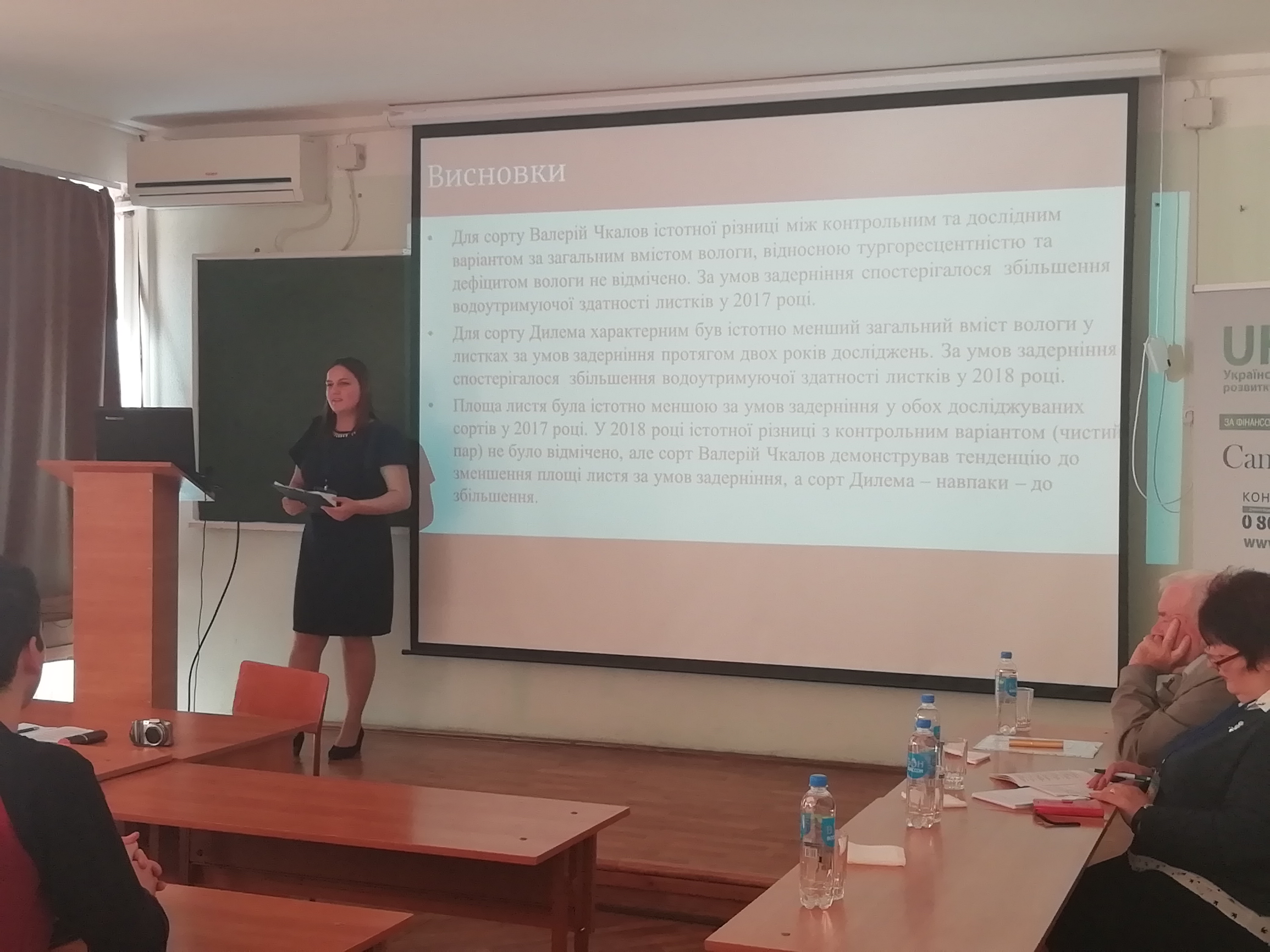 З 03 по 05 жовтня 2018 р. в Миколаївському національному аграрному університеті проходила міжнародна науково-практична конференція «Вплив змін клімату на онтогенез рослин», в якій приймали активну участь викладачі кафедри рослинництва імені професора В.В.Калитки, кафедри комп’ютерних наук і студенти факультету АТЕ. Виїзд представників ТДАТУ до Миколаїва став можливим за фінансової підтримки Українського проекту бізнес-розвитку плодоовочівництва (UHBDP). Від делегації нашого університету виступили на секційних засіданнях з доповідями ас. Кліпакова Ю.О., ас. Литвин Ю.О., студентка 31 АГ групи – Злоєдова Анастасія. В рамках програми конференції відбувся виїзд до ПАТу «Коблево» Березанського району Миколаївської області з метою ознайомлення з технологіями виготовлення вин.