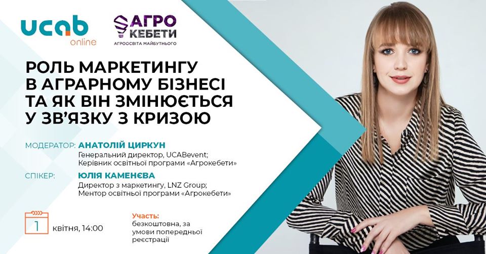 Асоціація “Український клуб аграрного бізнесу” спільно з агенцією UCABevent та освітньою програмою “Агрокебети” запрошують на онлайн-семінар “Маркетинг в агробізнесі: роль та зміни під час кризи”.