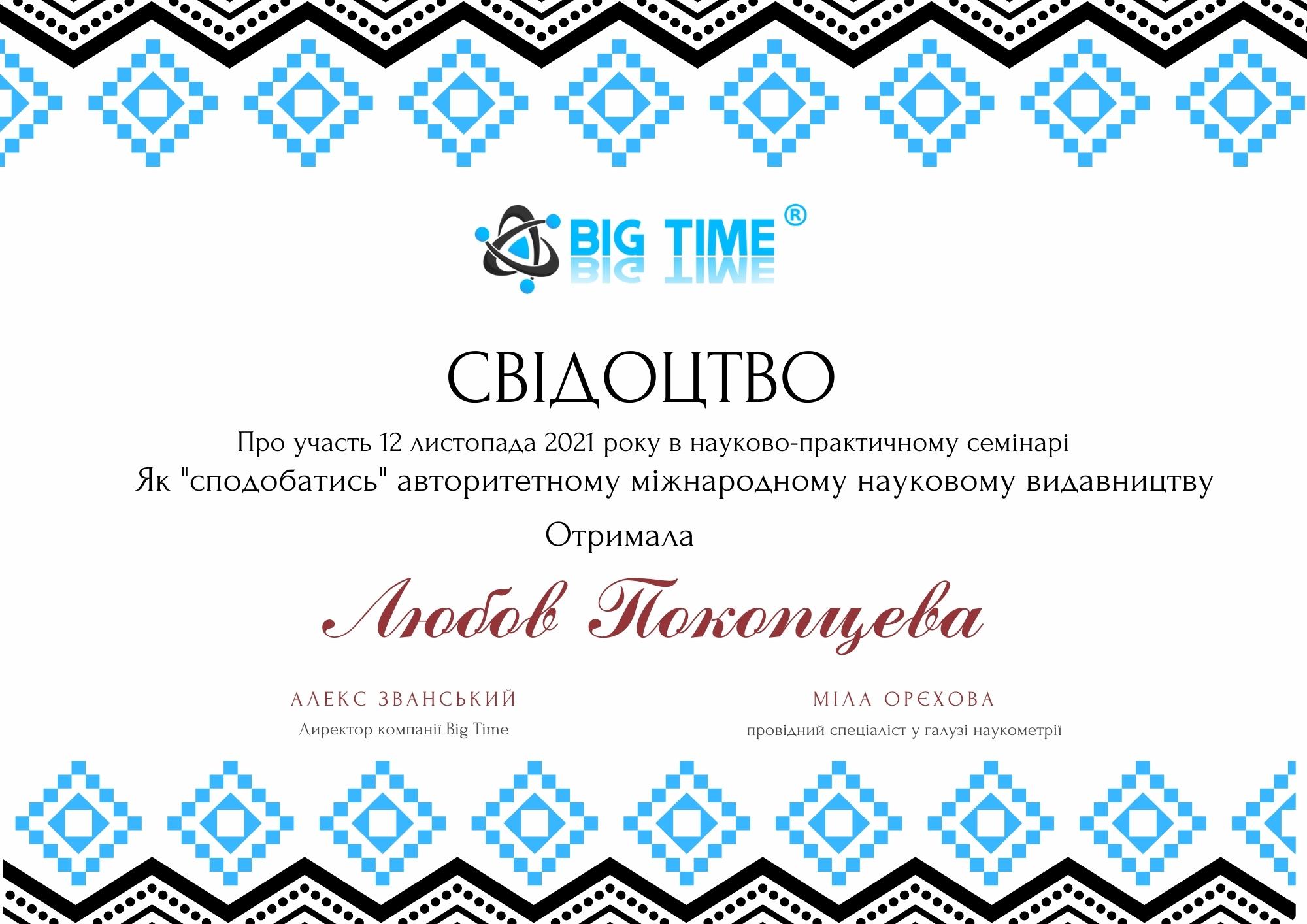 Покопцева Л.А. Особливості інтегрованого захисту рослин пшениці озимої за гідротермічних умов 2019 року/ О.В.Журавльова, Л.А.Покопцева, Н.Г.Нєжнова // Сучасні наукові дослідження на шляху до євроінтеграції: матеріали міжнар. наук.-практ. форуму (21-22 червня 2019 р.) Таврійський державний агротехнологічний університет імені Дмитра Моторного. - Ч. 1. - С. 139-141.