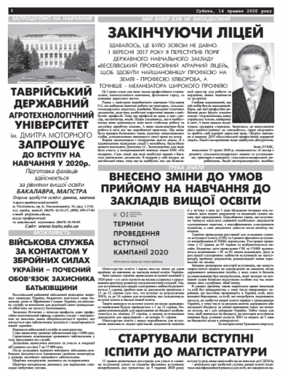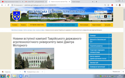 Також, з метою активізувати профорієнтаційну роботу, у засобах масової інформації Веселівського району, разом з кафедрою Суспільно-гуманітарних наук, було розміщено рекламне оголошення щодо вступної кампанії 2020 р. у Таврійському державному агротехнологічному університеті імені Дмитра Моторного. Також реклама ТДАТУ ім. Дмитра Моторного була розміщена на сайті Веселівської територіальної громади в розділі «Освіта», де з нею мали можливість ознайомитися батьки та випускники закріплених за кафедрою шкіл.