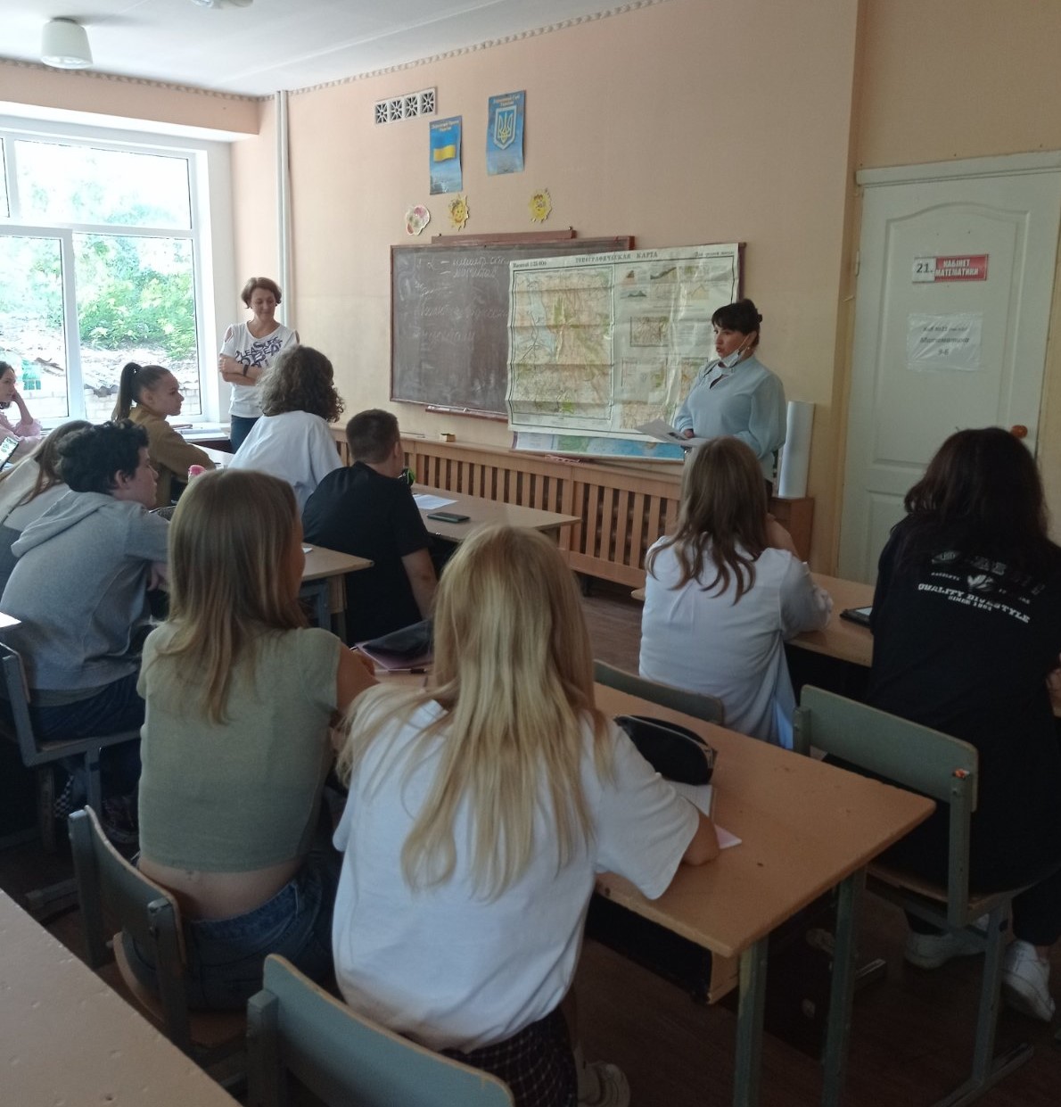 15.09.2021р. викладачі Таврійского державного агротехнологічного університету імені Дмитра Моторнрого відвідали 11 А та 11 В класи Ліцею № 10 Мелітопольської міської ради Запорізької області у рамках профорієнтаційної роботи. Якушева Інна Євгенівна викладач кафедри фінансів, банківської справи та страхування факультету економіки та бізнесу та Нєжнова Ніна Геннадіївна викладач кафедри рослинництва імені професора В.В.Калитки факультету агротехнологій та екології ознайомили випускників ліцею з інформацією про Таврійський державний агротехнологічний університет імені Дмитра Моторного: факультети і спеціальності, умови навчання, закордонні практики, військову підготовку, перспективи працевлаштування.