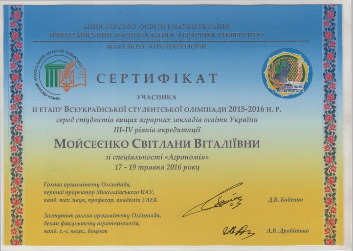Згідно з наказом Міністерства освіти i науки України від 25.11.2015 р. на базі Миколаївського національного аграрного університету було проведено ІІ етап Всеукраїнської студентської олімпіади зі спеціальності «Агрономія», яка проходила з 17 по 19 травня 2016 року.
