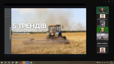15 листопада відбувся вебінар «Майбутнє фермерства. 5 трендів аграрного сектору України», організований Інститутом кліматично орієнтованого сільського господарства НААН України. Спікер, Сергій Сорокунський, співзасновник ФГ Sapfir Agro поділився з молоддю своїм поглядом на проблеми та виклики сільського господарства в умовах жорсткої реальності та показав, що фермерство може бути сучасним, захоплюючим та перспективним.
