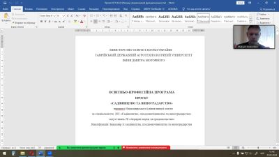 Було проведено обговорення проєкту оновлених освітньо-професійних програм “Агрономія” та «Садівництво та виноградарство» першого (бакалаврського) рiвня вищої освiти за спецiальнiстями 201-Агрономія та 203-садівництво, плодоовочівництво та виноградарство галузi знань 20-Аграрні науки та продовольство. Проекти представлено гарантами освітніх програм к.с.г.н. Алексеевою О.М. та к.с.г.н. Білоусовою З.В. У другому питанні були представлені результати громадського обговорення проєктів ОП. Також, відбулося обговорення результатів моніторингу опитування стейкхолдерів за 2023, 2024 р.р. щодо якості освітньої діяльності.