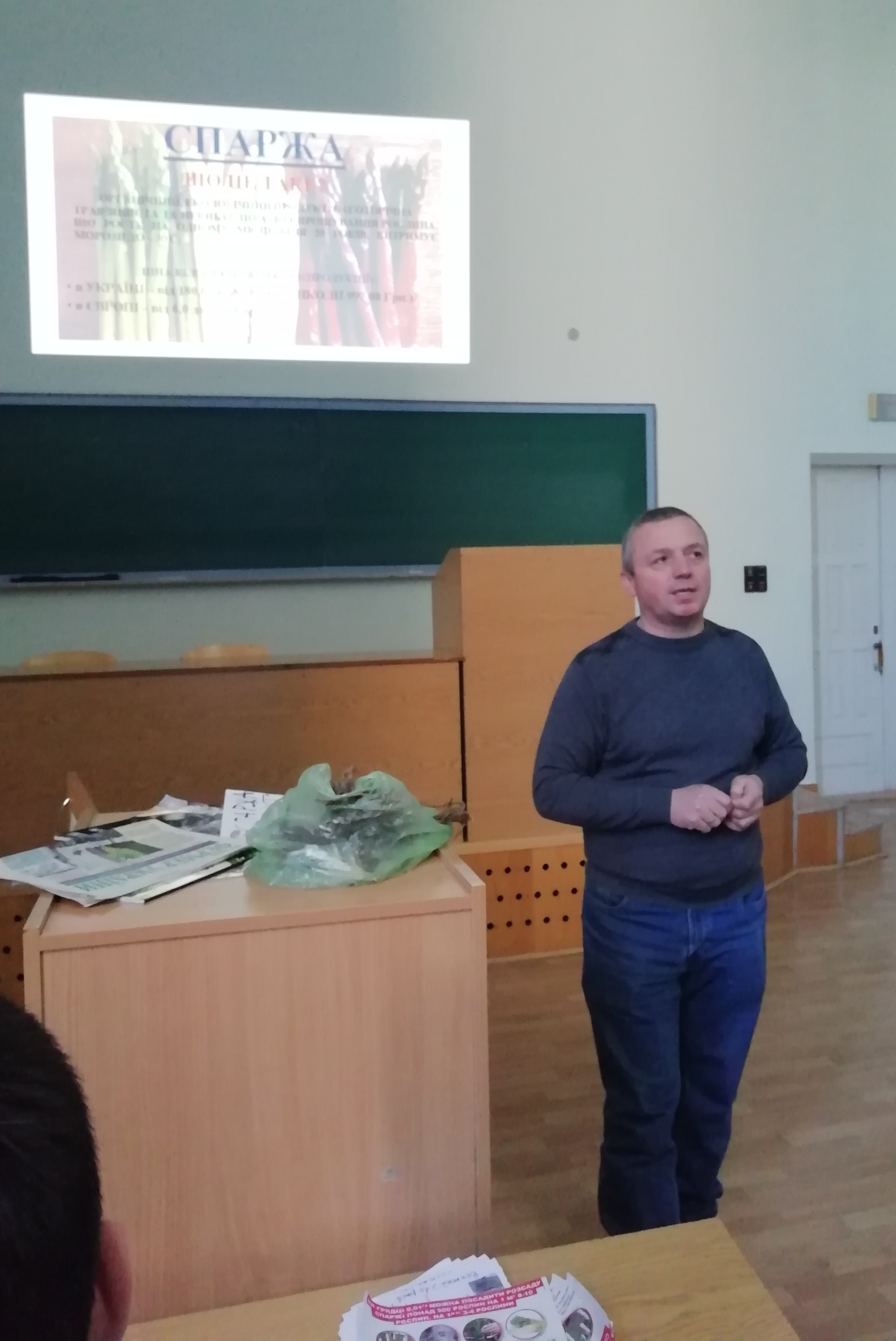 Василь Григорович розповів про вирощування спаржі на промислових площах посадки (польових умовах) та в домашніх умовах. У світі лідером з вирощування спаржі є Китай – 65 000 га, США – 58 000 га, Німеччина – 26 000 га, Євросоюз – 60 000 га. В Україні спаржа набуває швидкого поширення з вирощування та споживання. Її дозволено вирощувати законодавством, а також вона внесена в реєстр сортів і статистичну звітність.