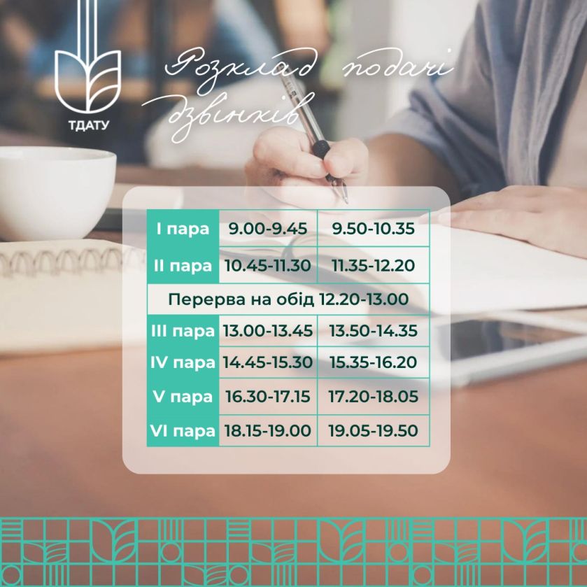 Розклад подачі дзвінків у ТДАТУ