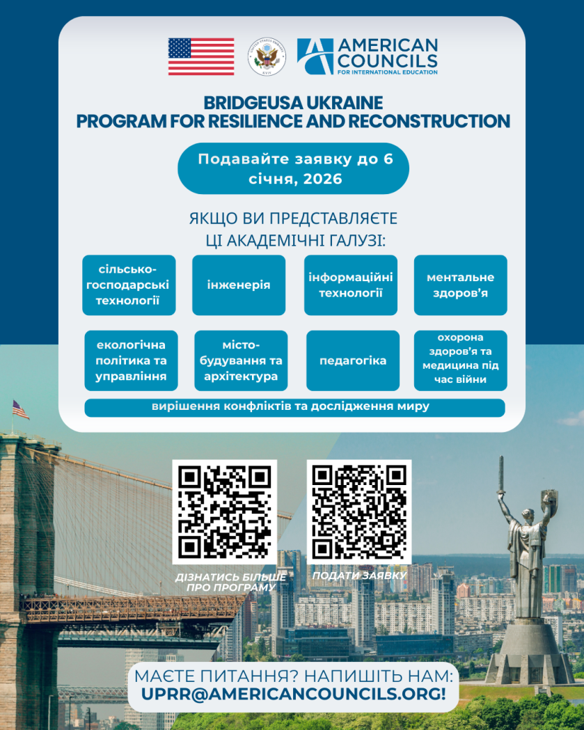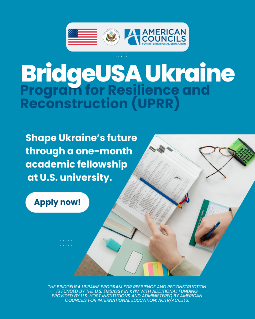Дізнатися детальніше про програму можна на сайті: BridgeUSA Ukraine – Program for Resilience and Reconstruction