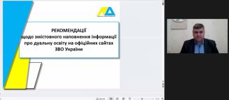 Перший проректор Олександр Ломейко виступив з питання про наповнення сайту університету щодо дуальної освіти в ТДАТУ. Він нагадав, що вже багато років університет плідно співпрацює з міжнародним проєктом USAID, який на сьогодні спрямував свою діяльність на популяризацію дуальної освіти. Було презентовано критерії оцінювання закладів вищої освіти України щодо наявності інформації про дуальну освіту на їх офіційних сайтах, її доступності усім зацікавленим особам та результати цієї перевірки. Олександр Ломейко також повідомив, що на сайті ТДАТУ зроблено окрему сторінку «Дуальна форма здобуття освіти», де здобувачі вищої освіти та стейкхолдери можуть отримати всю необхідну інформацію, та ознайомив присутніх із рекомендаціями до її заповнення в розрізі всіх спеціальностей, за якими проводиться навчання.