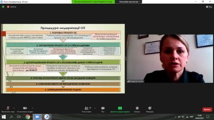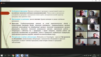 Відповідно до зазначених Положень, проєкт освітньої програми проходить обов’язкову внутрішню експертизу відділом МЯОД перед затвердженням на засіданні випускової кафедри, методичній комісії факультету і Вченій раді ТДАТУ. Тому, завідувачка відділу Радміла Скляр в своїй доповіді детально зупинилася на документальному підтвердженні проходження цієї процедури в рамках восьмого критерію оцінювання якості освітньої програми «Внутрішнє забезпечення якості освітньої програми» та основних підходах до удосконалення структури та змісту освітньої програми в розрізі вимог стандарту вищої освіти і сучасного ринку праці.
