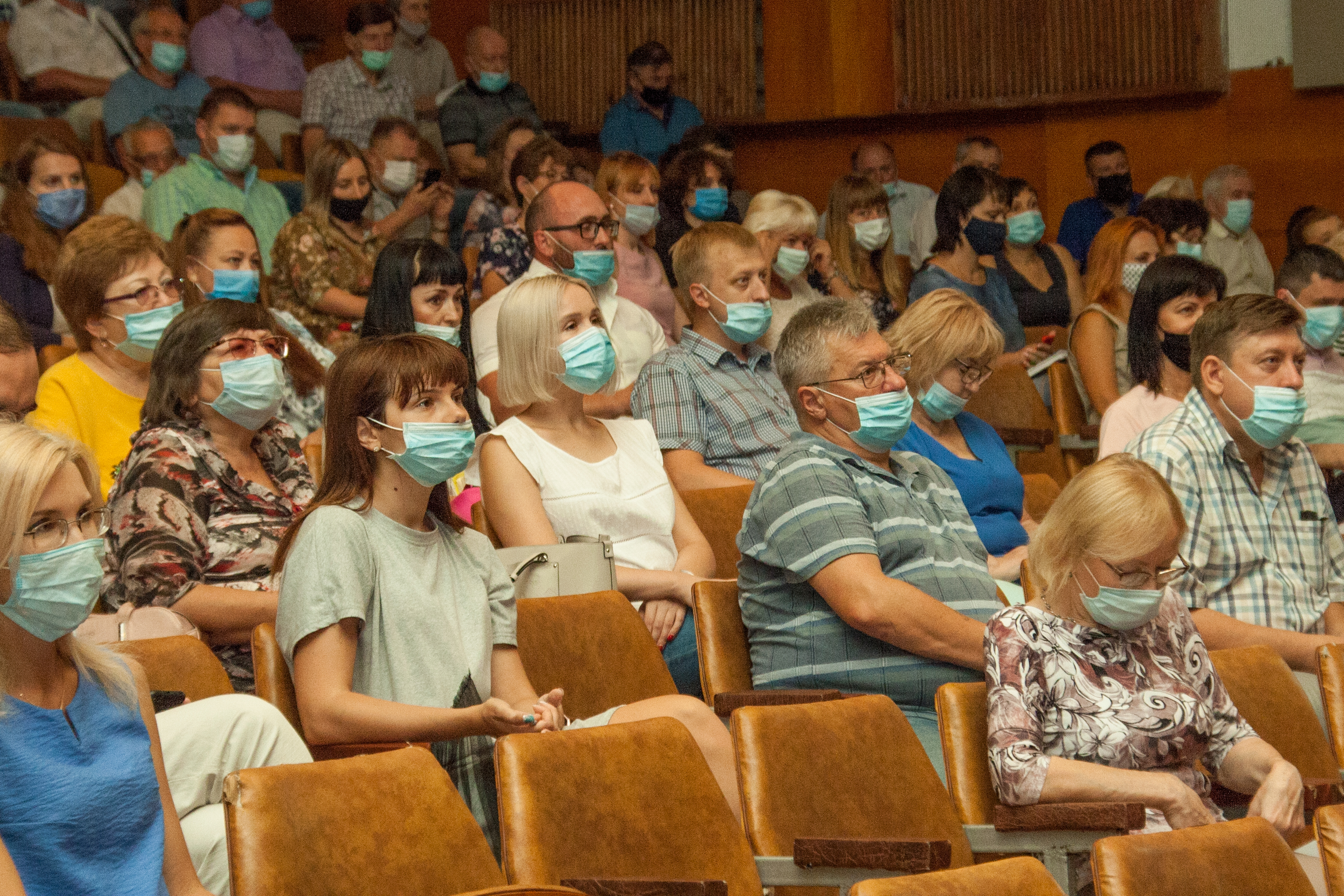 Проректор з НПР Олександр Ломейко нагадав трудовому колективу про протиепідемічні заходи, яких повинні дотримуватися співробітники та студенти. З вересня на всіх входах до університету буде продовжено режим термометрії, без захисної маски на заняття та до роботи допускатися ніхто не буде. Навчальні аудиторії та лабораторії перед заняттями повинні проходити вентиляцію протягом 10 хвилин, на входах будуть встановлені санітайзери з анисептиками.