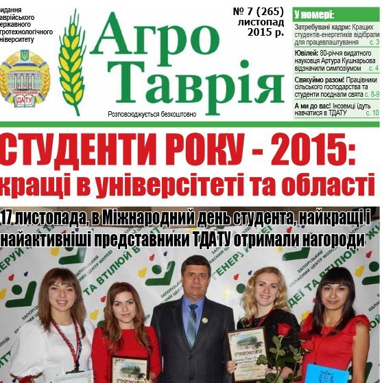 Шановні співробітники та студенти! З метою популяризації ТДАТУ та профорієнтації, просимо Вас надавати інформацію щодо участі у факультетських, університетських, міських, обласних, всеукраїнських та міжнародних заходах для публікації в газеті «АГРОТАВРІЯ» та інших засобах масової інформації міста та області.