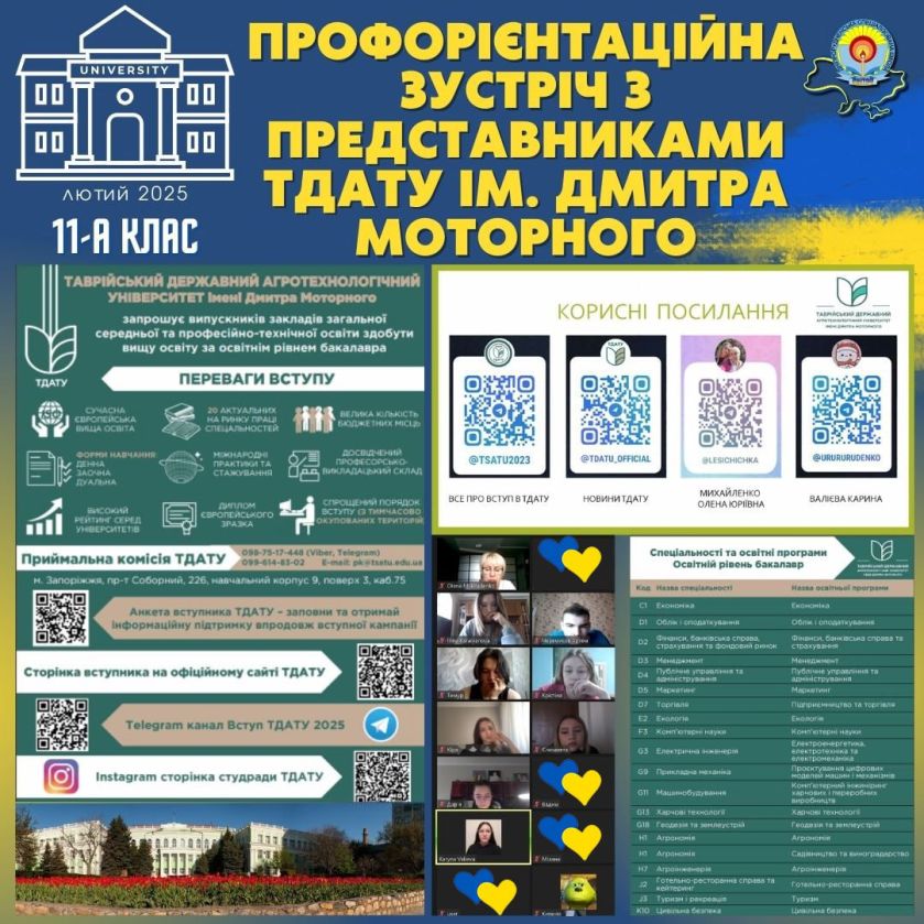 Учні 11-А класу мали можливість дізнатися все про умови вступу та навчання в ТДАТУ, поставити питання та отримати вичерпні відповіді.