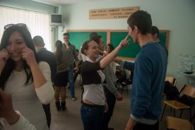 Екзамен, як і лекції, також пройшов дуже цікаво, з усмішкою на обличчі в дружній атмосфері, але при цьому не втрачаючи субординації та професіоналізму. Розпочалось все з «майстер-класу» від Сергія Куліковського, лектора Запорізької «Школи вожатської майстерності» – він продемонстрував дитячі ігри, які будуть задіяні безпосередньо в таборі, а потім власне провів перевірку знань засвоєних під час лекцій.