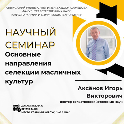 Ігор Аксьонов, д.с.-г.н., професор кафедри раслинництва та садівництва ім. професора В .В. Калитки був запрошений Атирауським державним університетом імені Х. Досмухамедова (Казахстан), як закордонний вчений, де Ігор Аксьонов з 8 по 22 листопада 2024 проводив заняття.