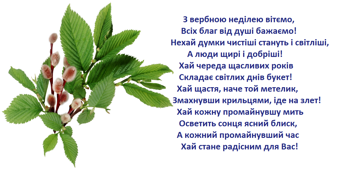 Неділя за тиждень перед Великоднем називається “Вербною”, “шутковою” або “квітною”. За християнським вченням у цей час Спаситель Христос уїжджав до Єрусалиму на ослику, і миряни устеляли перед ним дорогу пальмовим листям. Оскільки в Україні пальми не ростуть, то їх замінили вербовими гілками. Це дерево здавен вельми шановане серед нашого народу, тому що воно перше сповідає про прихід весни і має цілющі властивості.