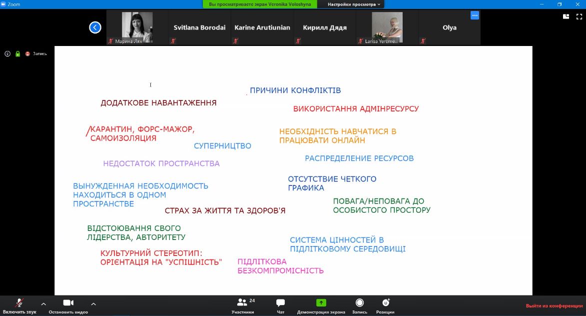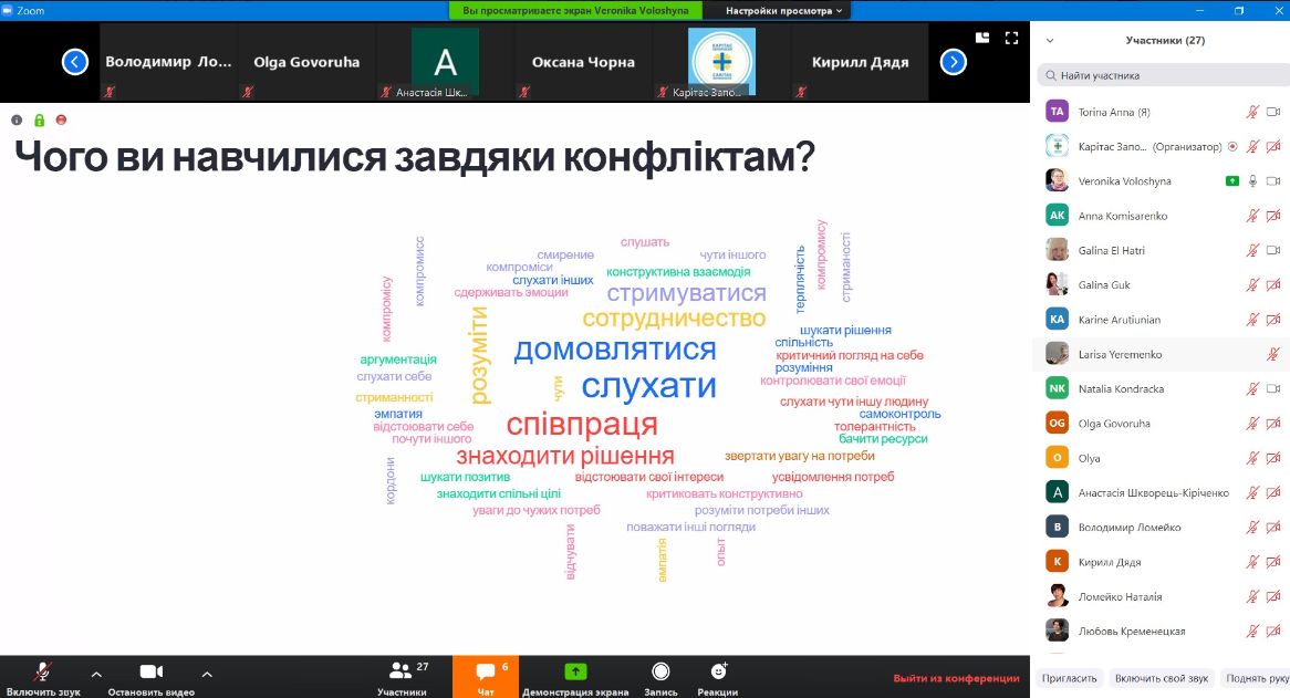 Карантин став часом потужного саморозвитку викладачів кафедри суспільно-гуманітарних наук, які продовжують свою роботу в он-лайн режимі. Старший викладач кафедри к.психол.н. Єременко Л. В. взяла участь у сертифікаційному курсі «Базові навички медіатора» метою якого є навчання суспільно активних громадян навичкам медіації, ненасильницької комунікації та конструктивному вирішенню конфліктів, які будуть сприяти порозумінню та згуртованості і впроваджуватися у громадах м. Запоріжжя і Запорізькій області. Під супроводом досвідчених фахівців учасники мали змогу ближче познайомитися з теорією та аналізом конфлікту, здобути практичні навички поведінки та інтервенції в конфлікті. Програма курсу «Базові навички медіатора» відповідає українським та європейським стандартам підготовки медіаторів та надає можливість учасникам: – отримати теоретичні знання та практичні інструменти у роботі медіатора; – оволодіти основними компетенціями медіатора; – навчитися працювати з різними видами конфліктів; – ознайомитися з українськими та міжнародними стандартами медіації; – отримати сертифікат з курсу базових навичок медіатора. Набуті знання, практичні навички та навчальні інструменти будуть використовуватися Єременко Л. В. у роботі зі студентами, що буде сприяти удосконаленню навчального процесу, формуванню конфліктологічної компетентності і психологічної культури майбутніх фахівців.