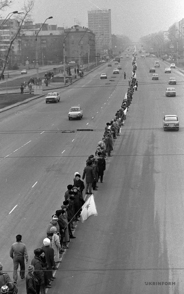 Мільйони тоді ще радянських українців узялись за руки від Києва до Львова, відзначаючи День Соборності.