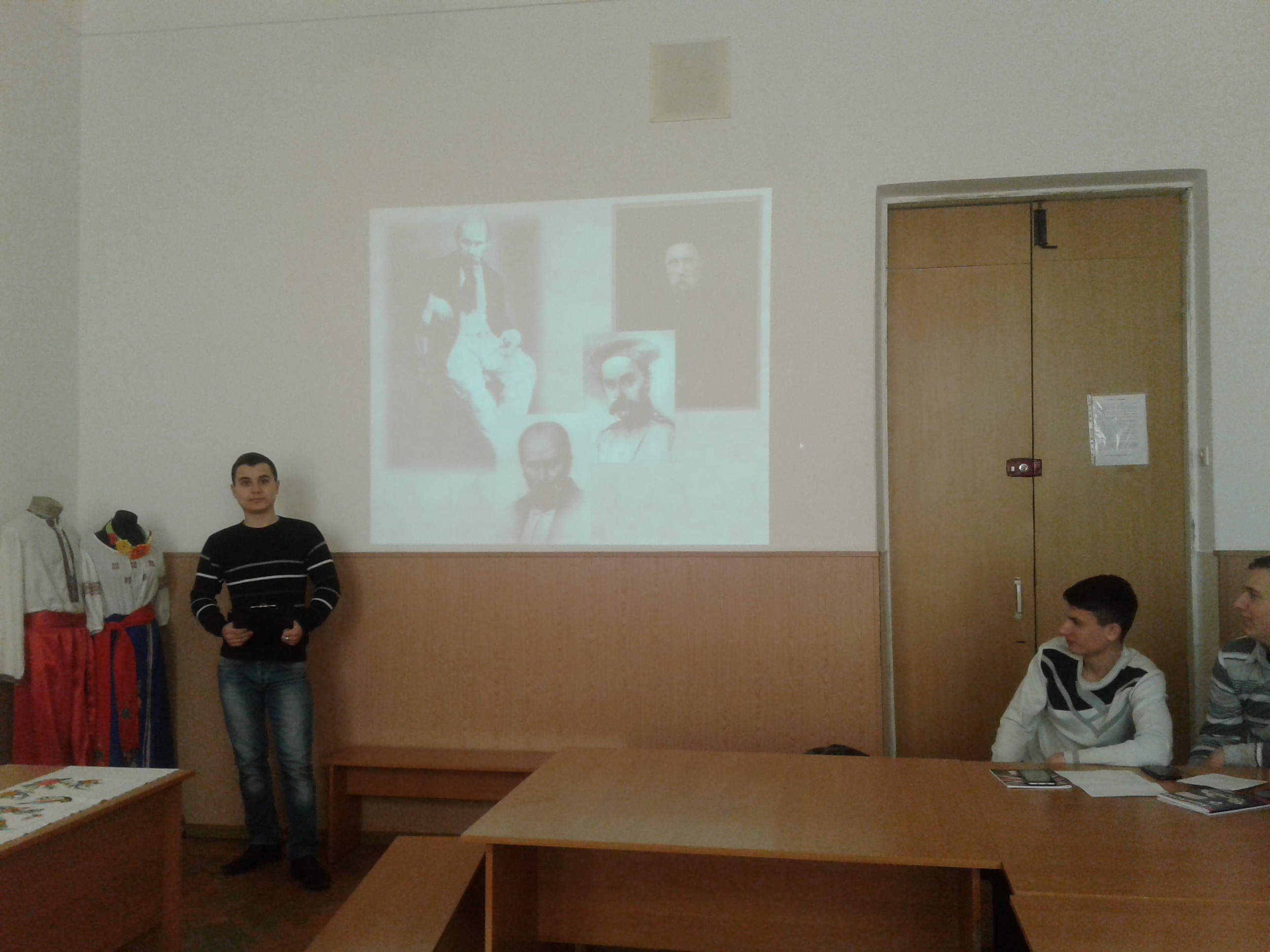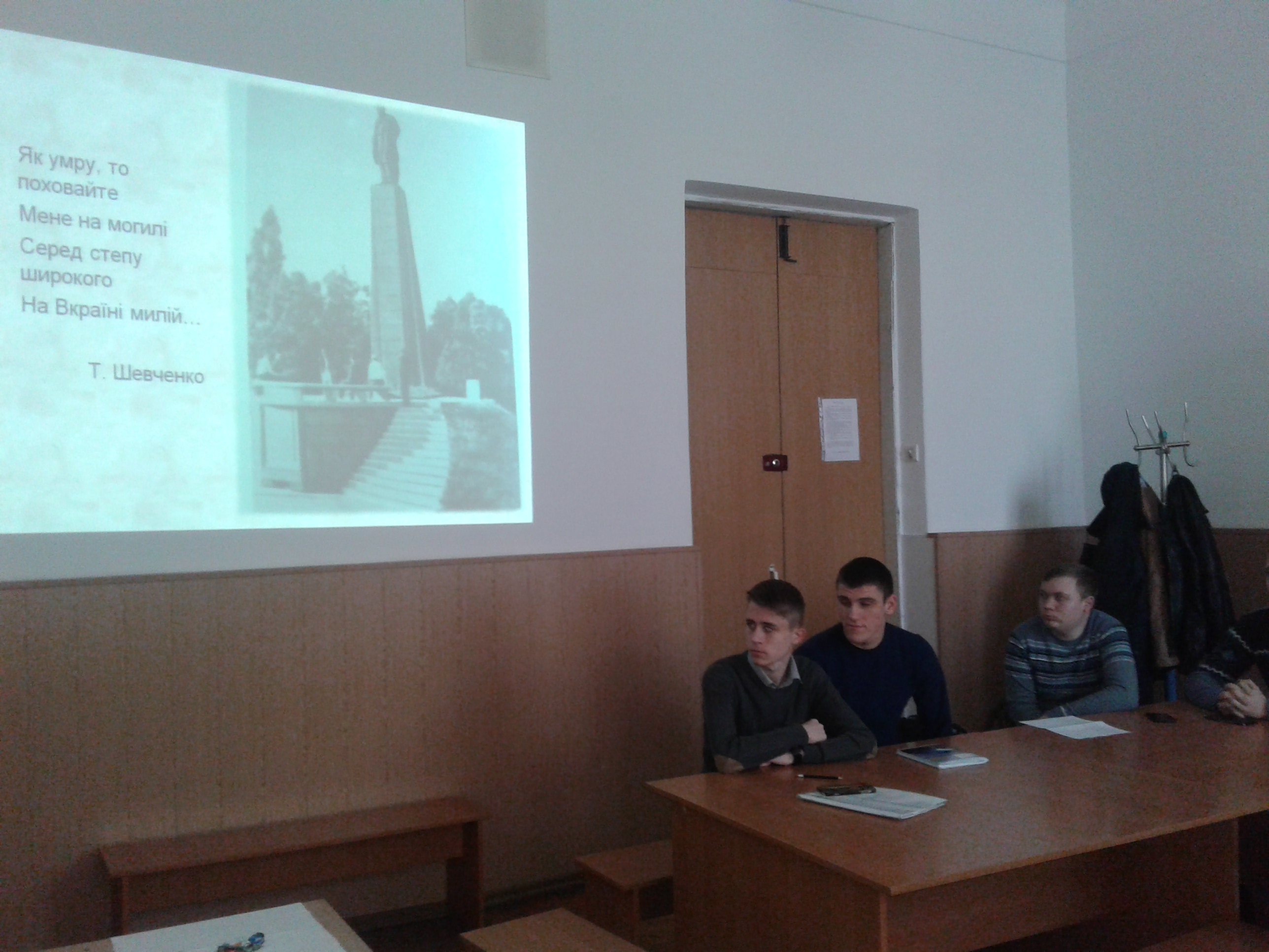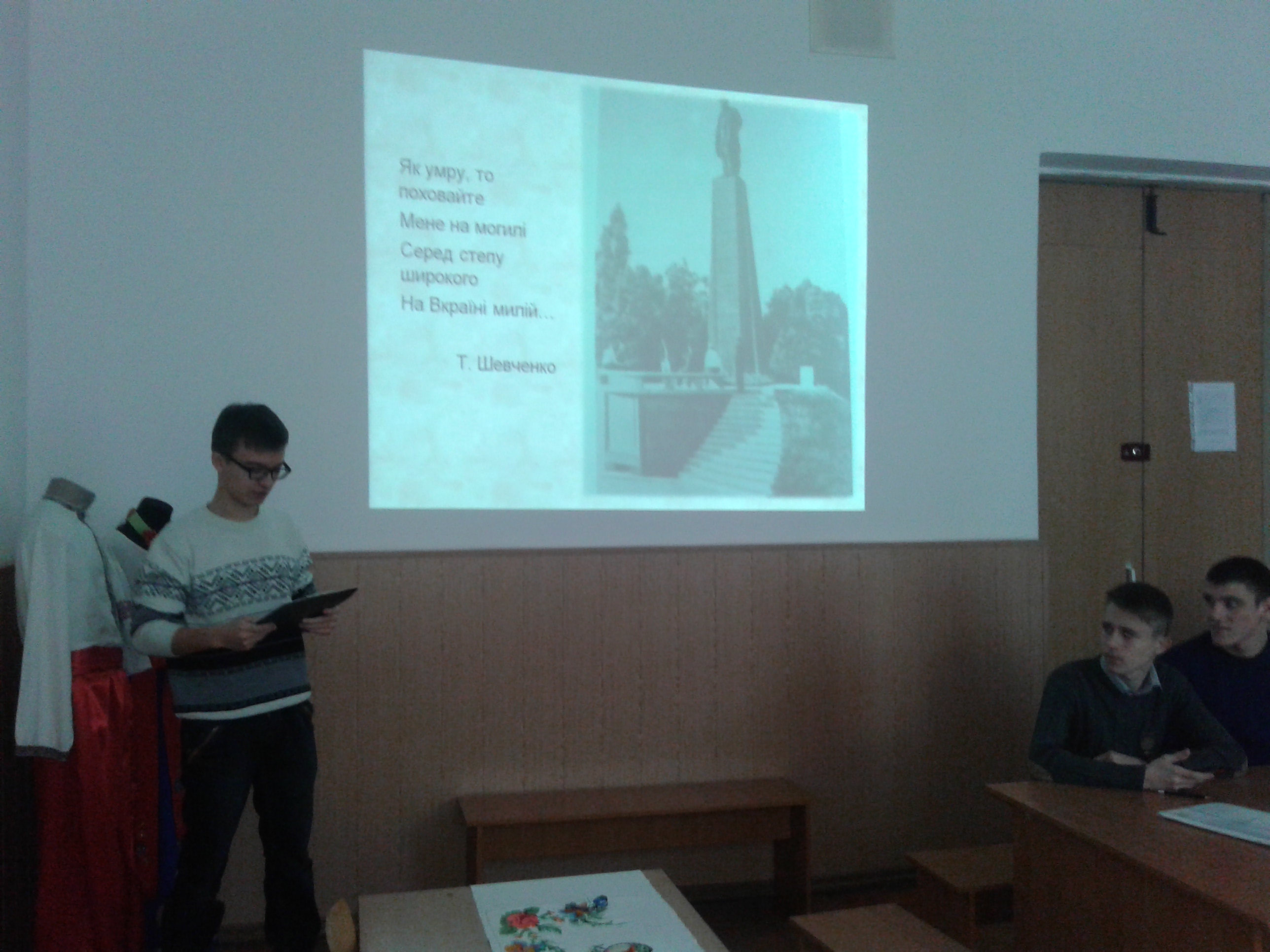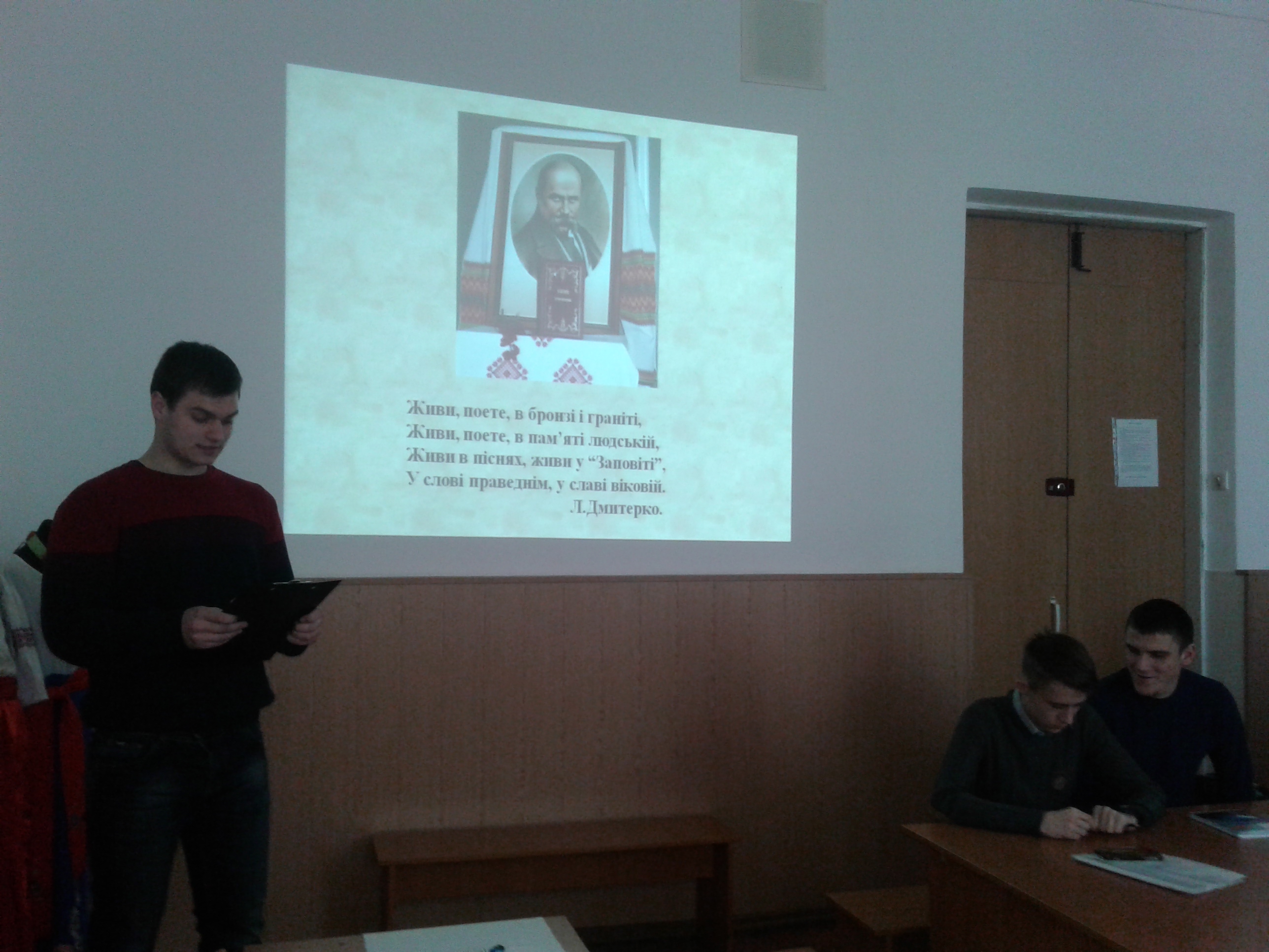 10 березня 2016 кафедрою суспільно-гуманітарних наук було проведено шевченківські читання. У цьому заході взяли у часть студенти 21 та 22 ПМО. З уст учасників звучали різні за змістом і направленістю поезії Т. Г. Шевченка, які не змогли залишити байдужим жодного слухача. Наша молодь іще раз довела, що вона не тільки інтелектуально та естетично розвинена, а ще й досить талановита. Тож дякуємо усім, хто подарував нам незабутню подорож у поетичний світ Кобзаря. Бажаємо подальших успіхів!!!
