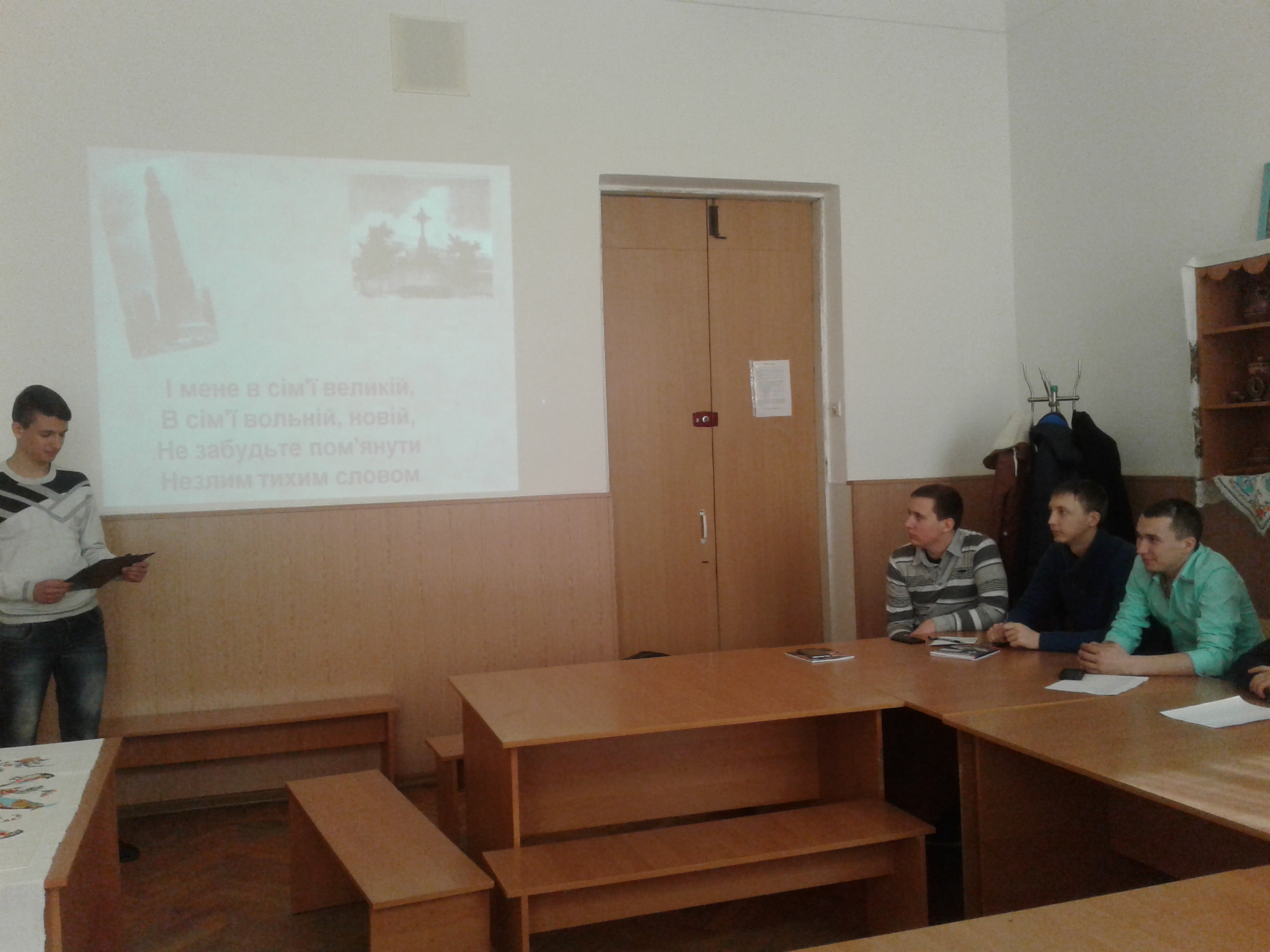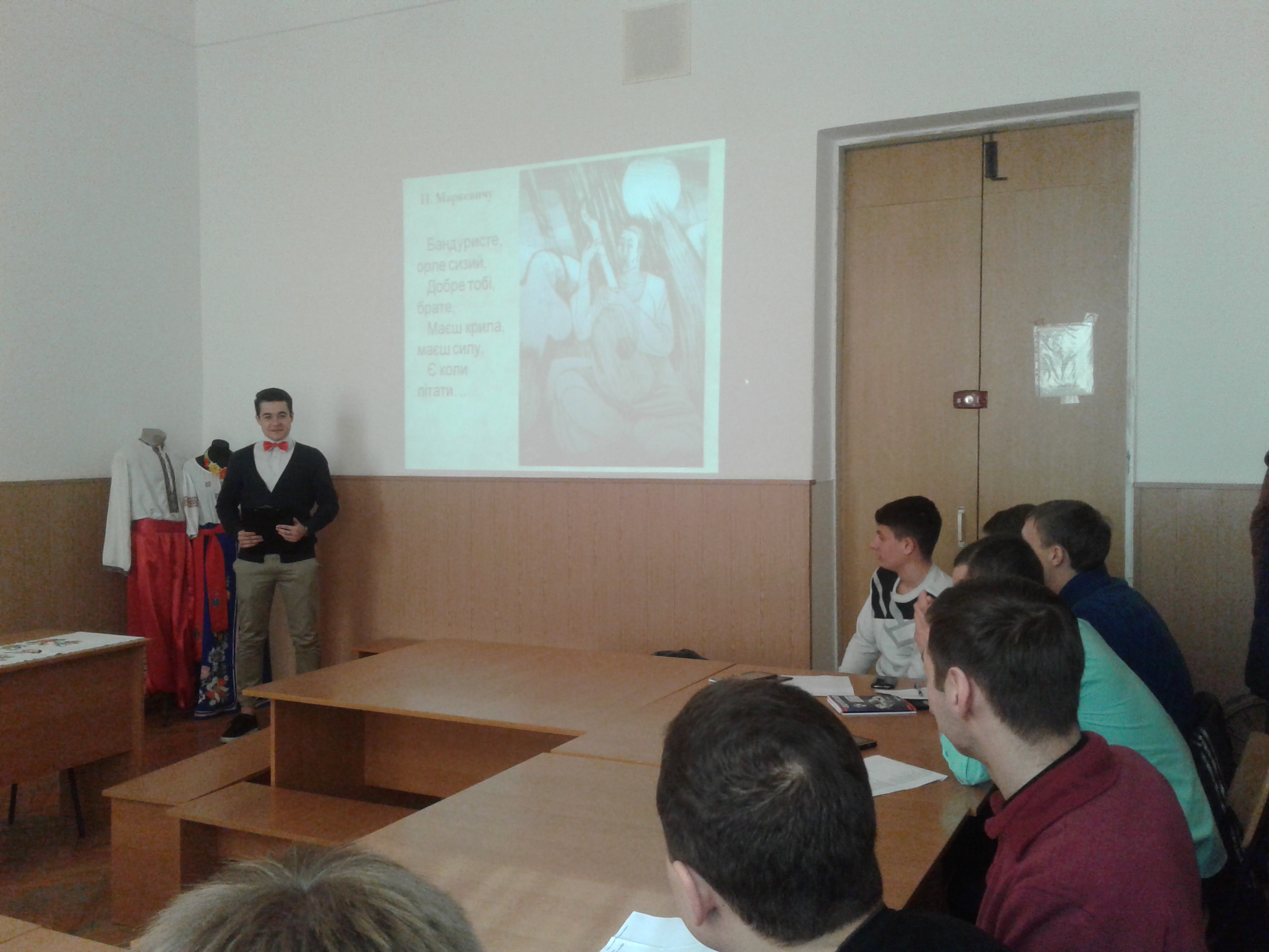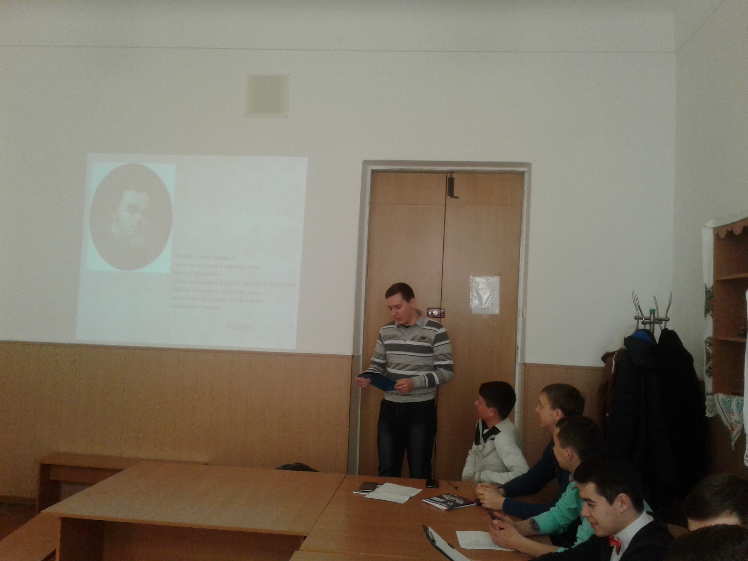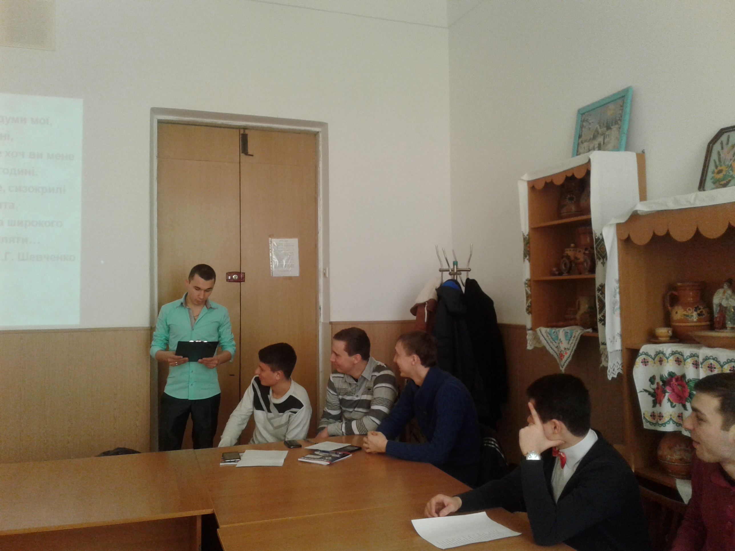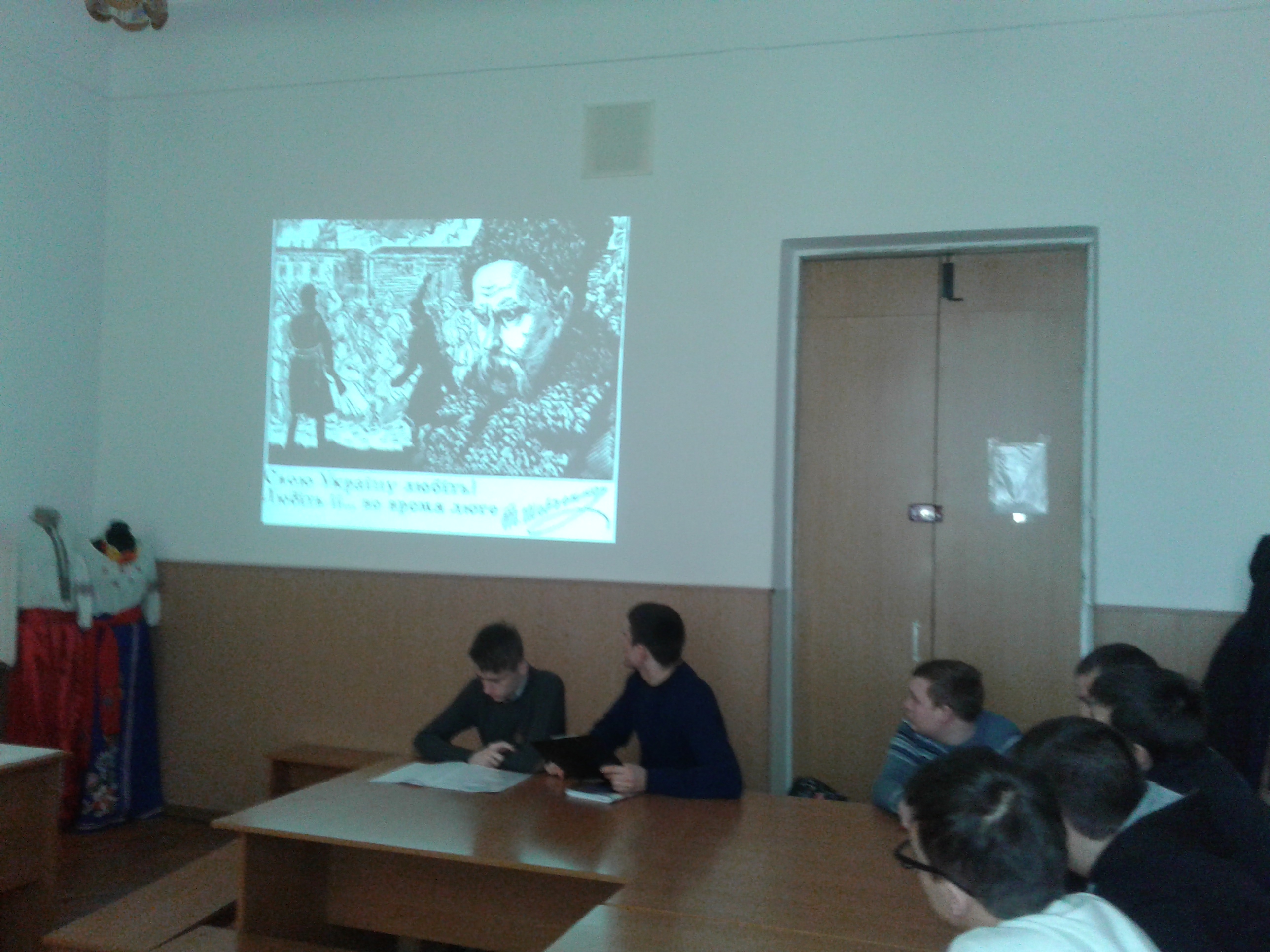 10 березня 2016 кафедрою суспільно-гуманітарних наук було проведено шевченківські читання. У цьому заході взяли у часть студенти 21 та 22 ПМО. З уст учасників звучали різні за змістом і направленістю поезії Т. Г. Шевченка, які не змогли залишити байдужим жодного слухача. Наша молодь іще раз довела, що вона не тільки інтелектуально та естетично розвинена, а ще й досить талановита. Тож дякуємо усім, хто подарував нам незабутню подорож у поетичний світ Кобзаря. Бажаємо подальших успіхів!!!