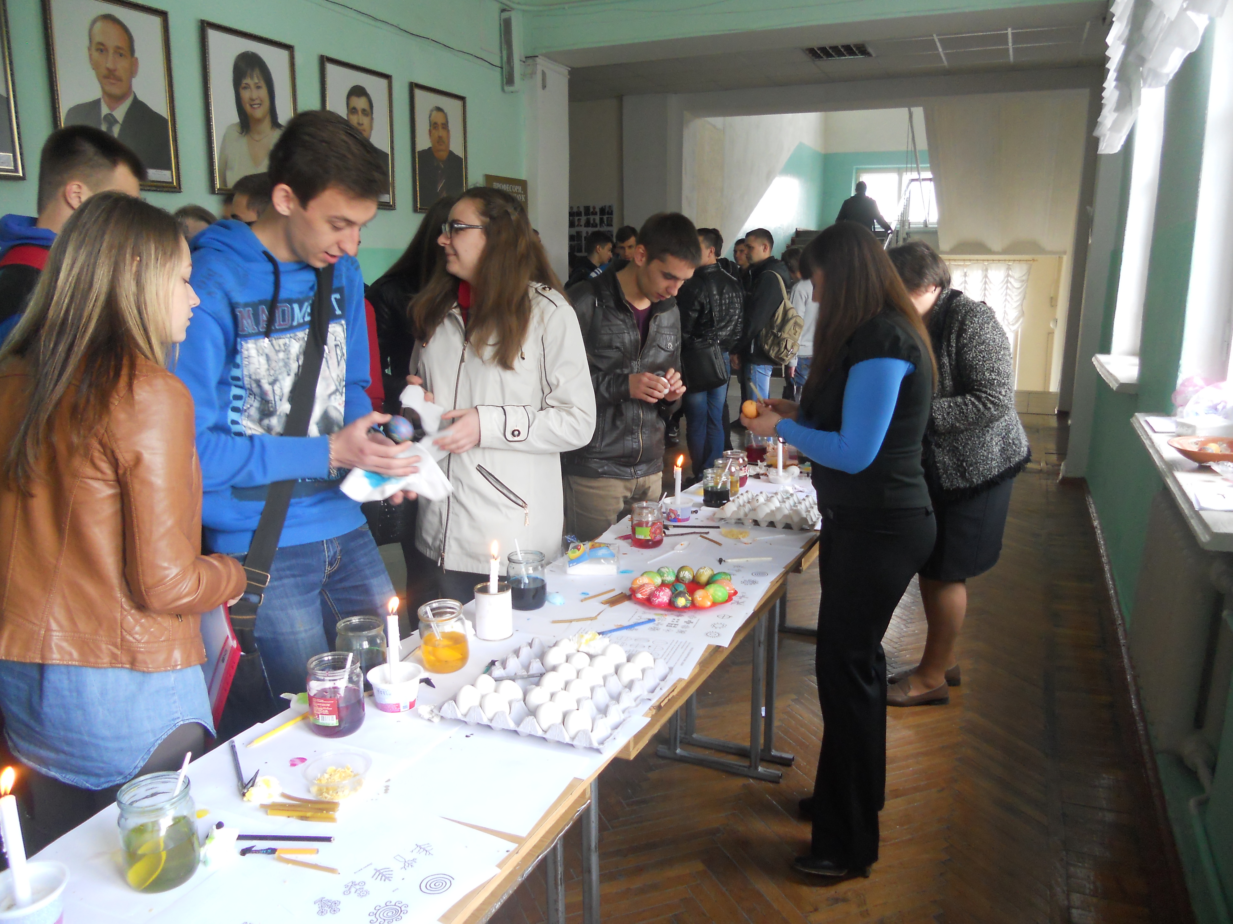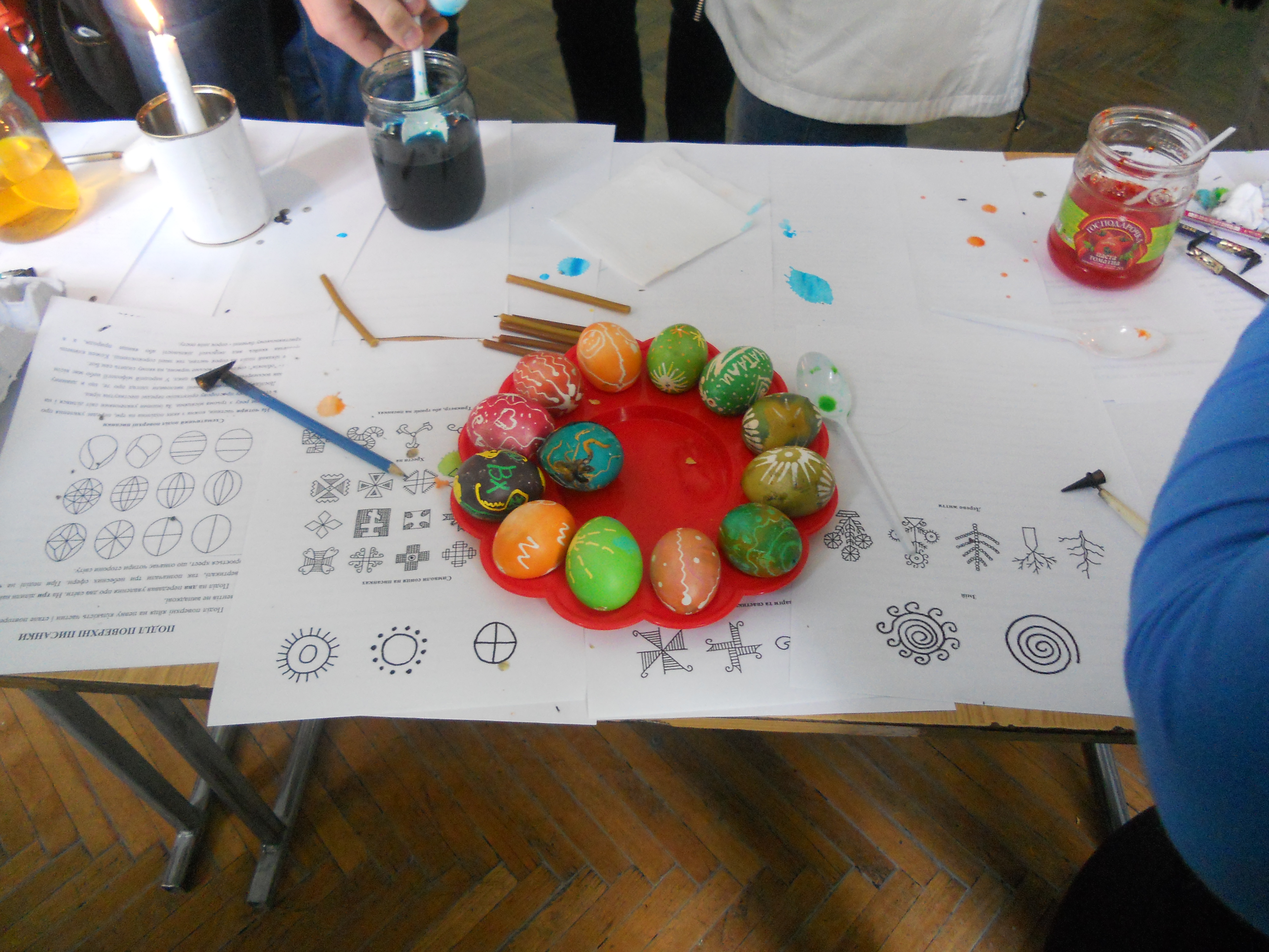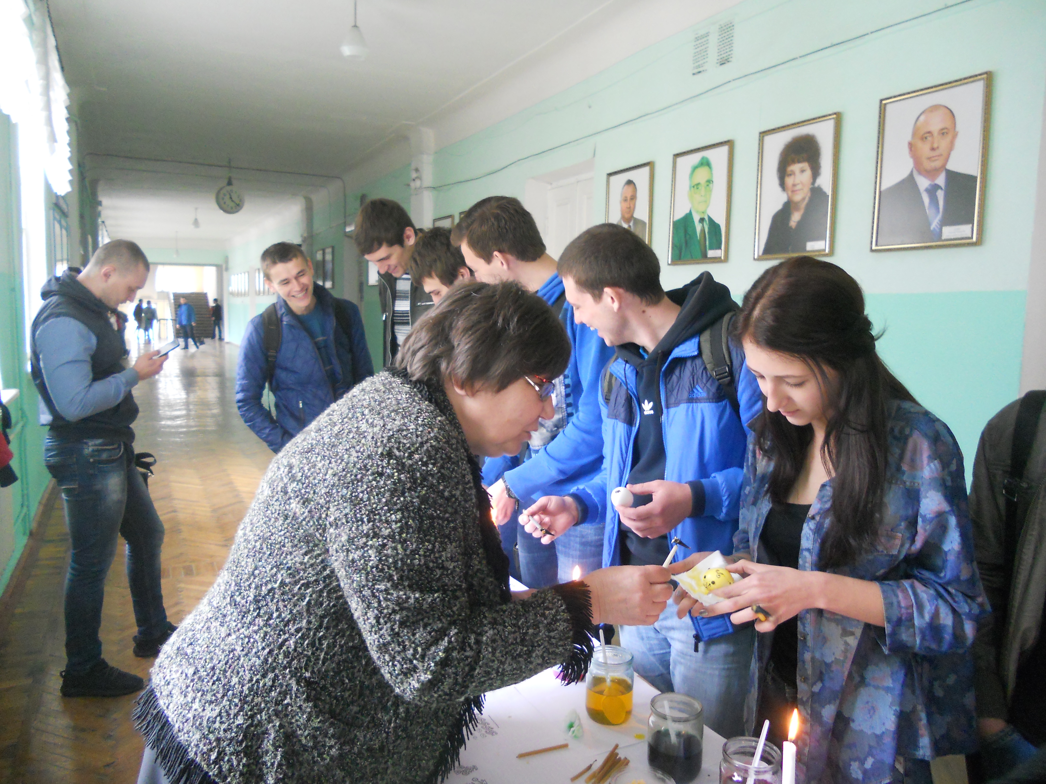 У дружній атмосфері, допомагаючи один одному, студенти ознайомилися з традиціями нашого народу і навчилися творити писанки. Жоден студент не залишився осторонь цієї справи, і з великою цікавістю все занурилися в царину розпису елементів писанки. Найцікавішим для студентів виявився процес знімання воску з яєць, адже під такою оболонкою приховувались усі фантазії.