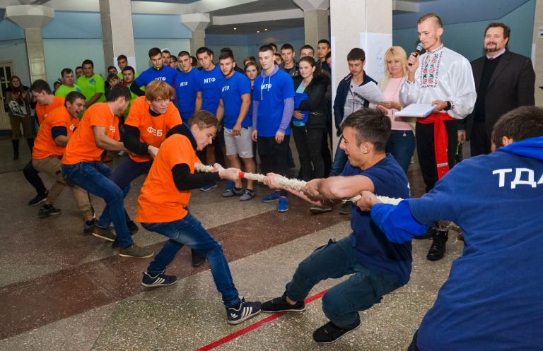 Нащадки славних козаків – команди факультетських куренів на «Козацьких розвагах» показали свої знання з історії козацтва та продемонстрували фізичну міць та силу. Весело та завзято пройшли змагання з перетягування канату, «Добрий день, друже», «Бій півнів», «Конкурс писарів», де треба було за одну хвилину намалювати козака. В якості суддів виступили Хохлов Г. О., помічник ректора Грицаєнко І. М. та викладач кафедри СГН Михайлов В. В.