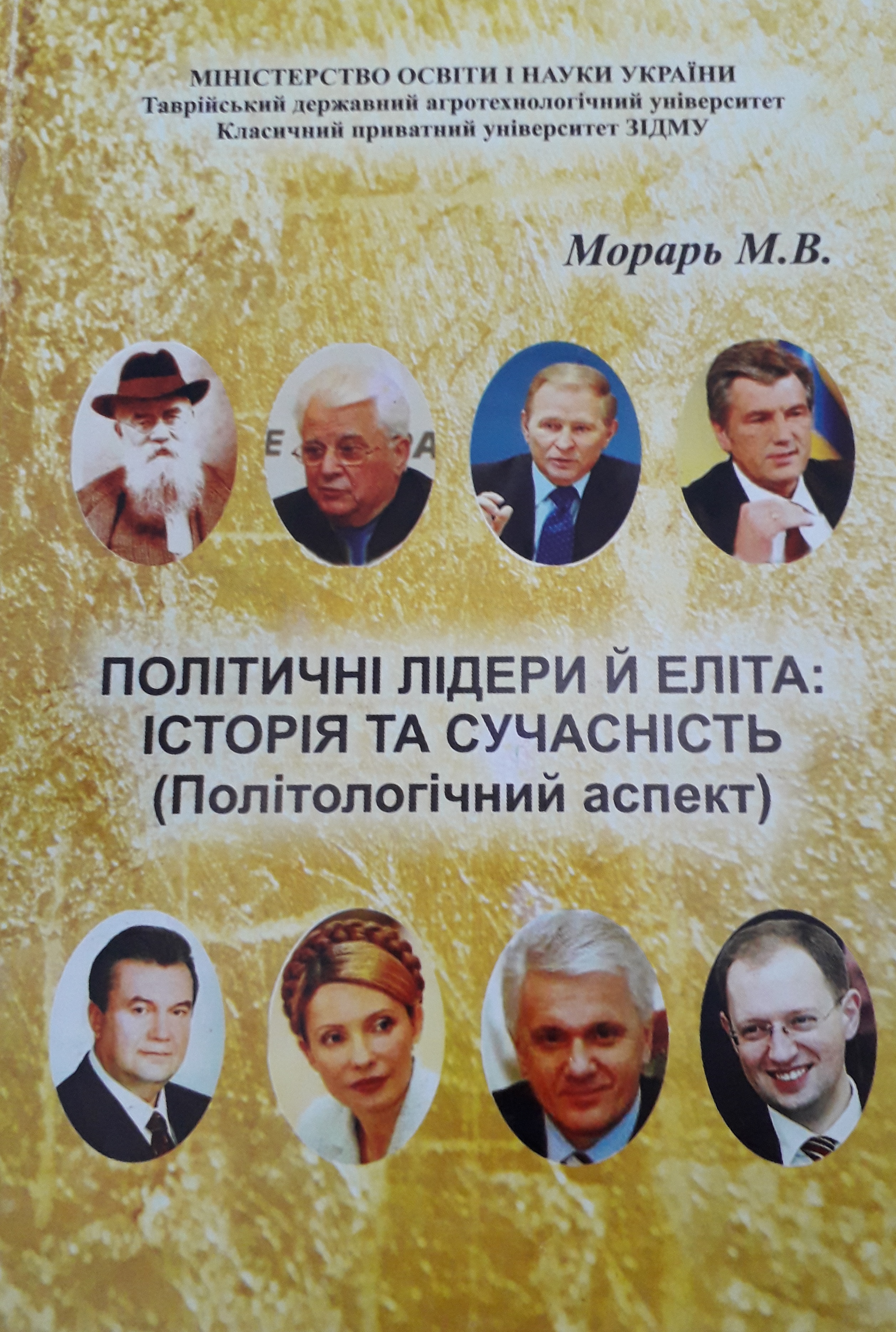 Морарь М.В. Політичні лідери й єліта: історія та сучасність (Політологічний аспект) – Мелітополь, ТДАТУ – ЗІДМУ, 2009, 239 с.