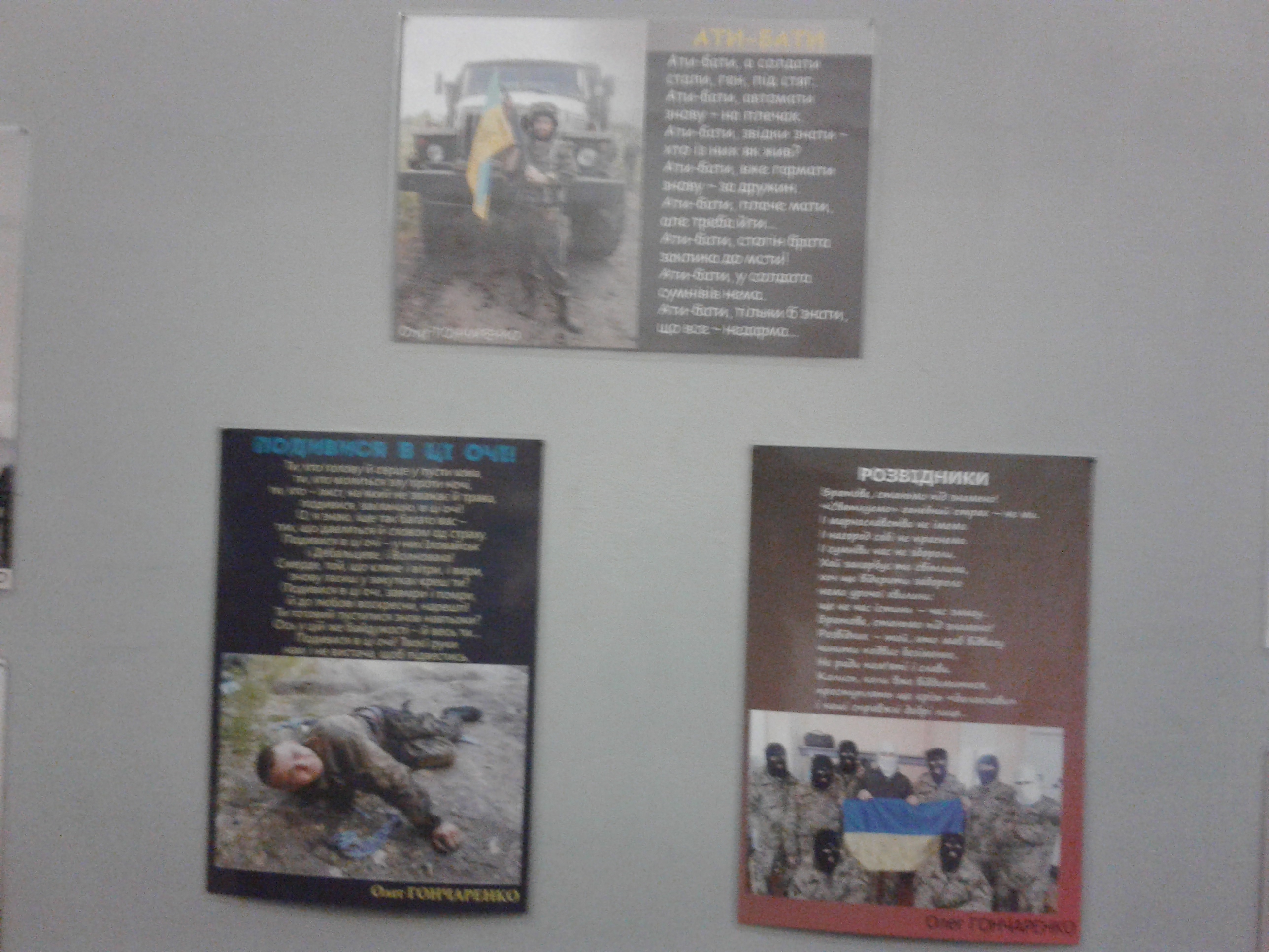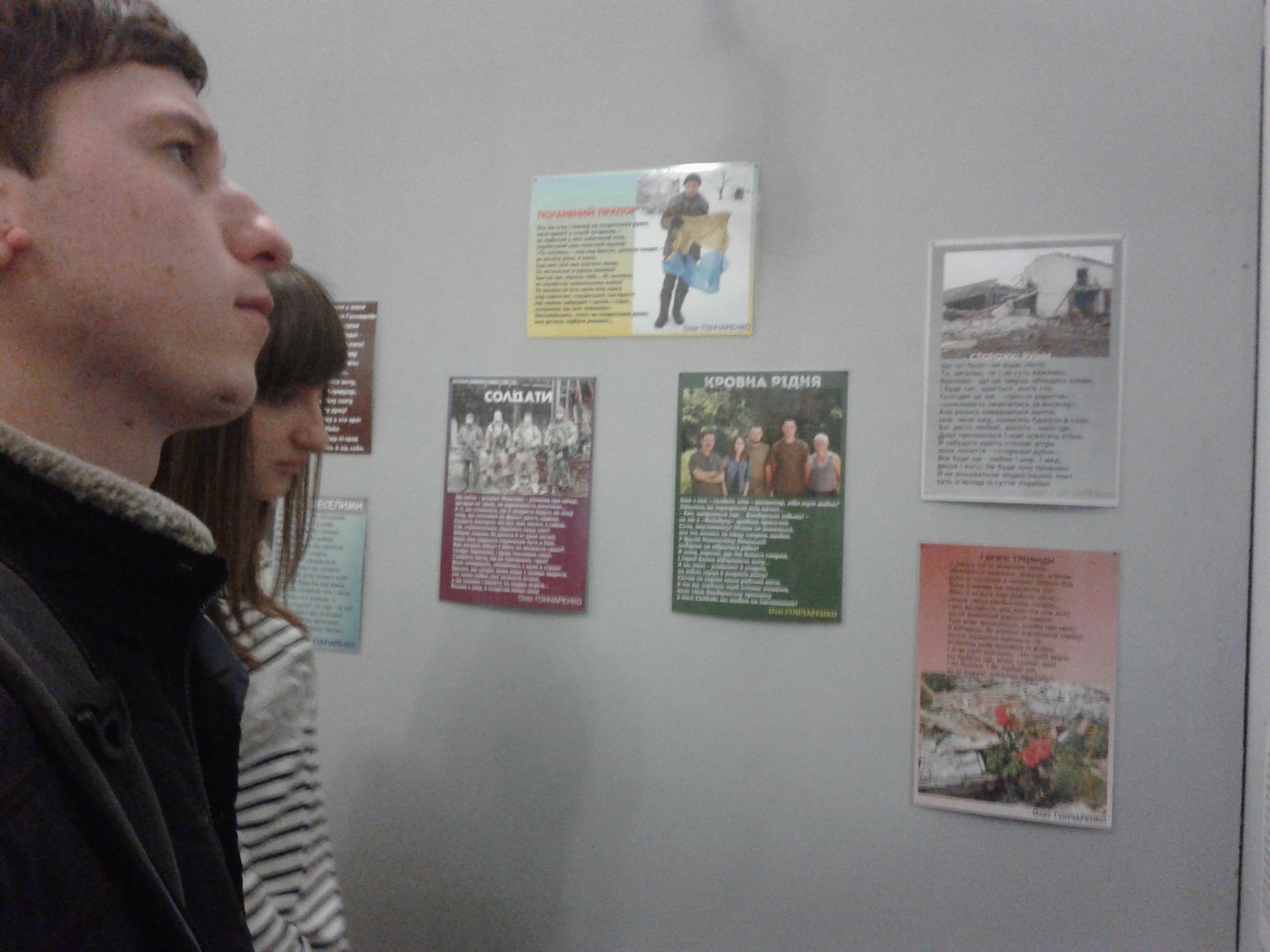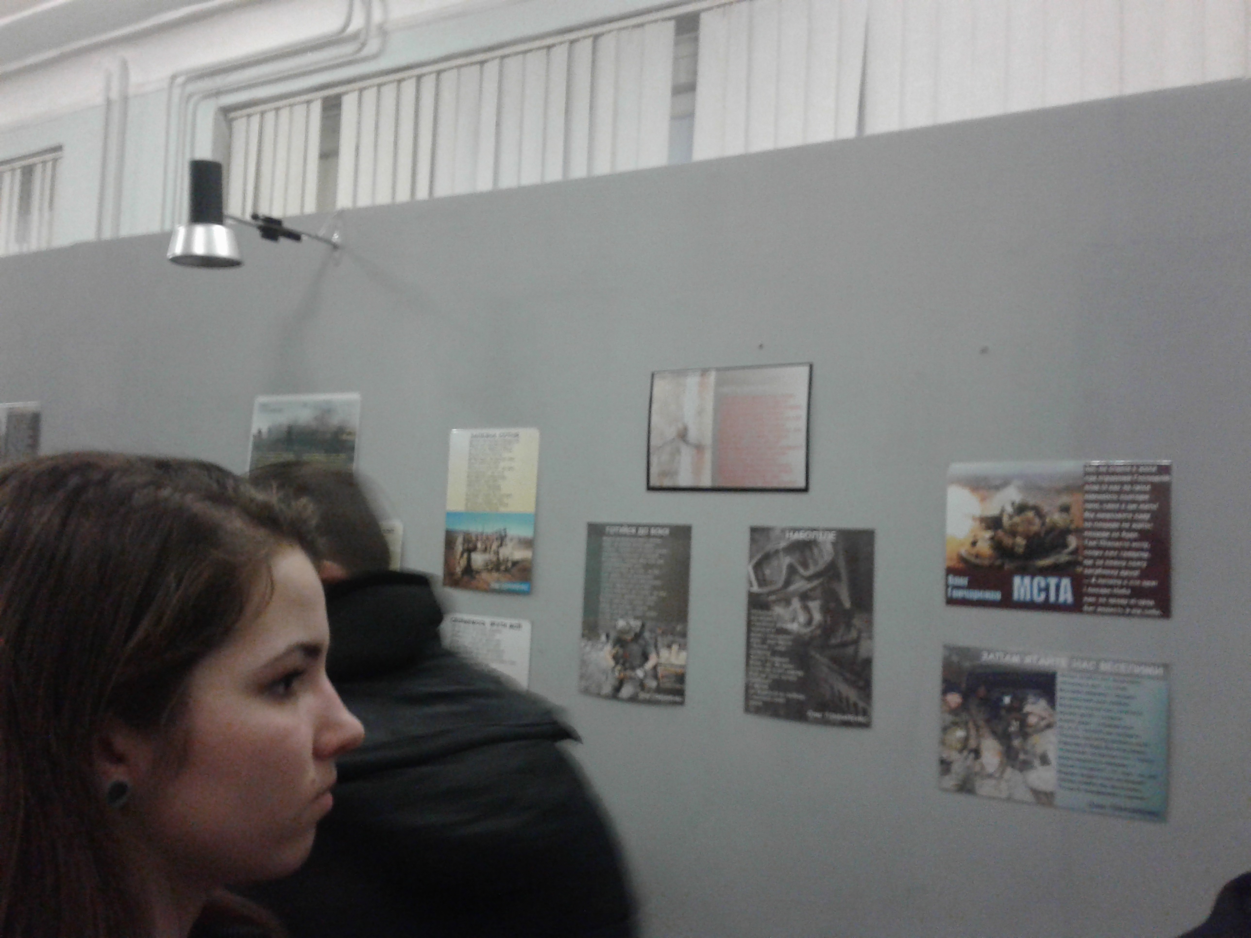 25 березня 2016 року о 14.00 під керівництвом викладача кафедри суспільно-гуманітарних наук Шлєіною Л.І. студенти енергетичного факультету та факультету економіки та бізнесу відвідали в Мелітопольському міському краєзнавчому музеї відкриття виставки фото-поетичних колажів Олега Гончаренка «АТО. МОМЕНТИ ІСТИНИ». Ця унікальна виставка – реакція поета на події, що відбуваються в нашій країні. Олег Миколайович, як справжній патріот і словом, і ділом не міг залишатися осторонь…