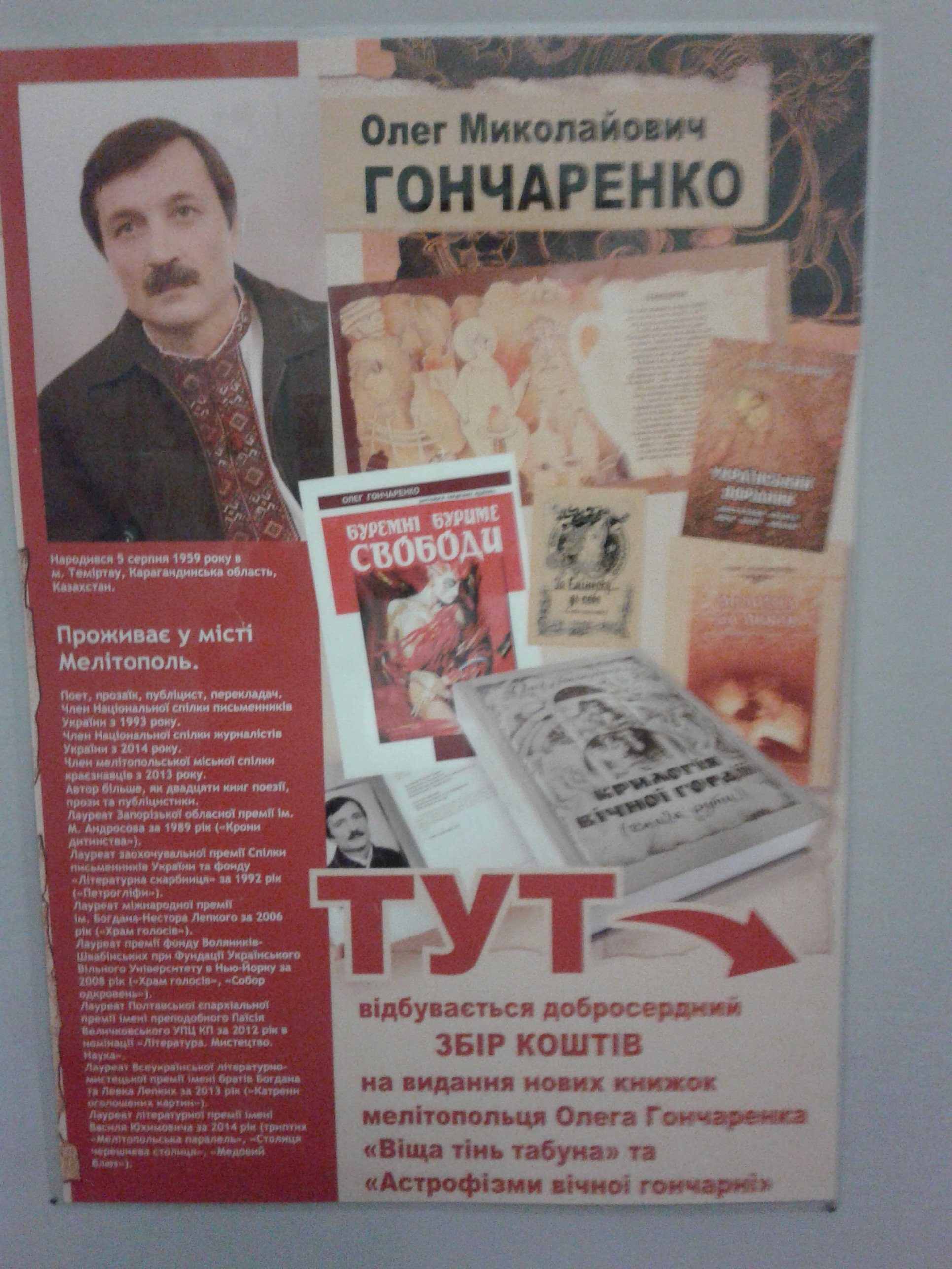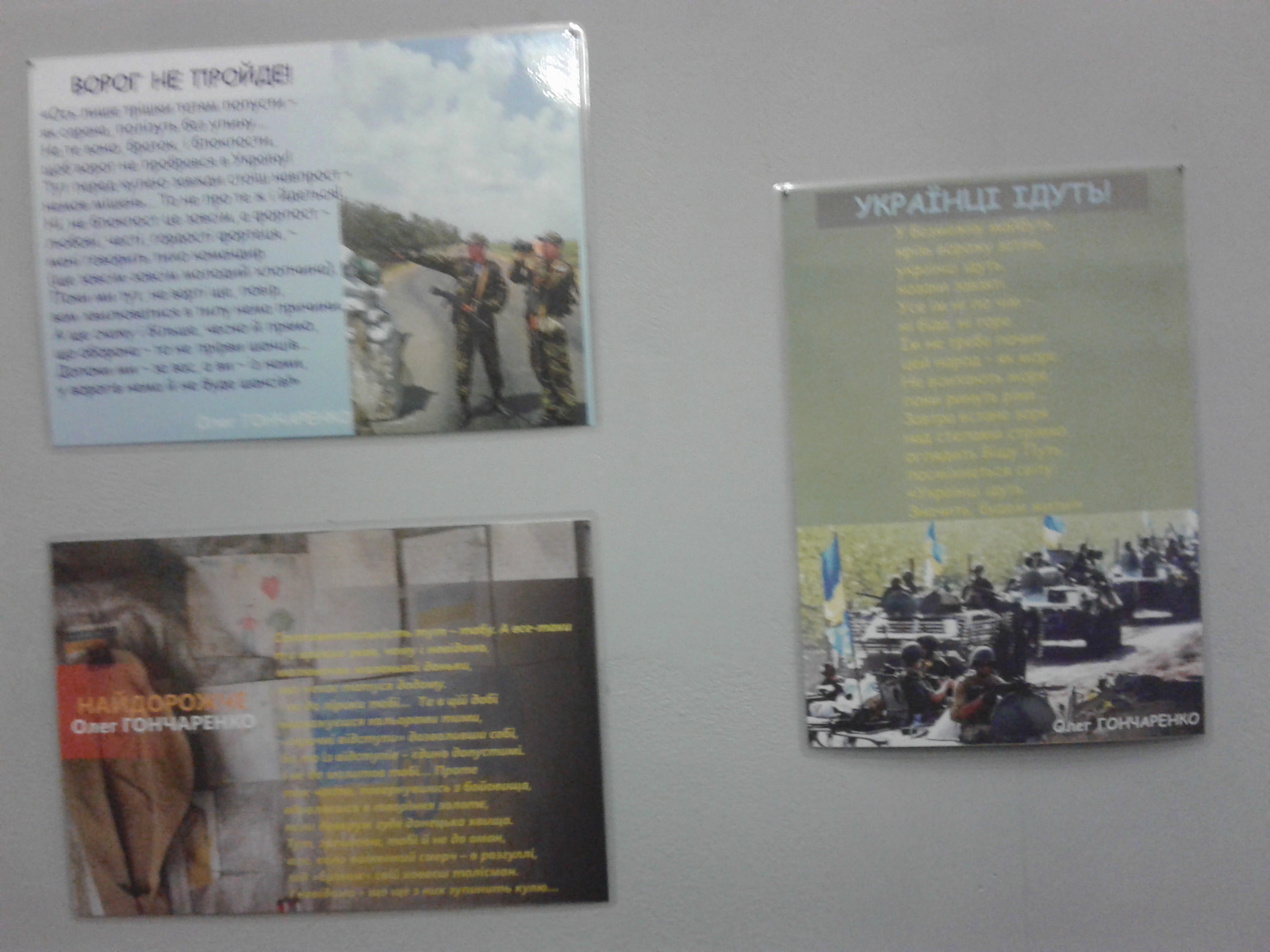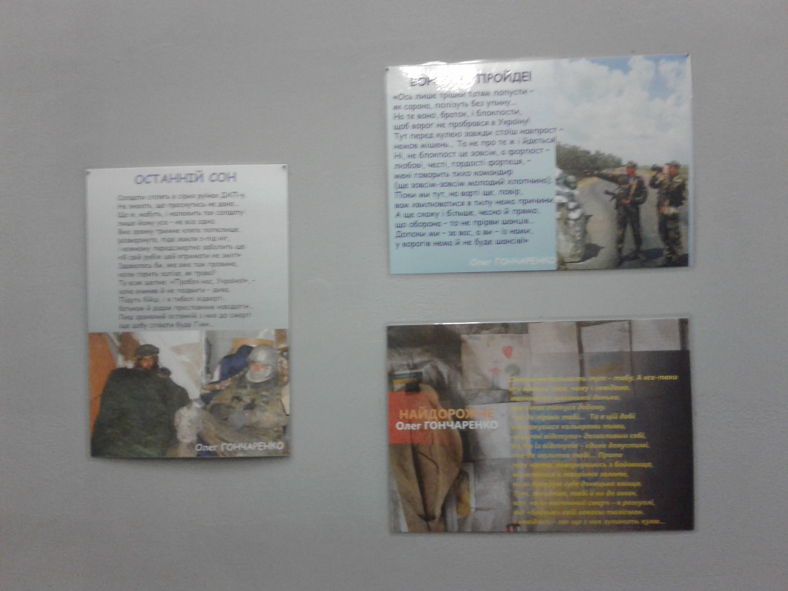 25 березня 2016 року о 14.00 під керівництвом викладача кафедри суспільно-гуманітарних наук Шлєіною Л.І. студенти енергетичного факультету та факультету економіки та бізнесу відвідали в Мелітопольському міському краєзнавчому музеї відкриття виставки фото-поетичних колажів Олега Гончаренка «АТО. МОМЕНТИ ІСТИНИ». Ця унікальна виставка – реакція поета на події, що відбуваються в нашій країні. Олег Миколайович, як справжній патріот і словом, і ділом не міг залишатися осторонь…