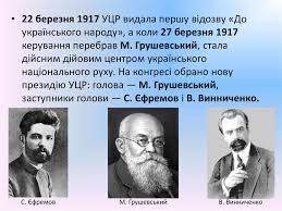 1917, 17 березня – у Києві було утворено Українську Центральну Раду (УЦР). Це був представницький орган українського народу, а після проголошення УНР – перший парламент.