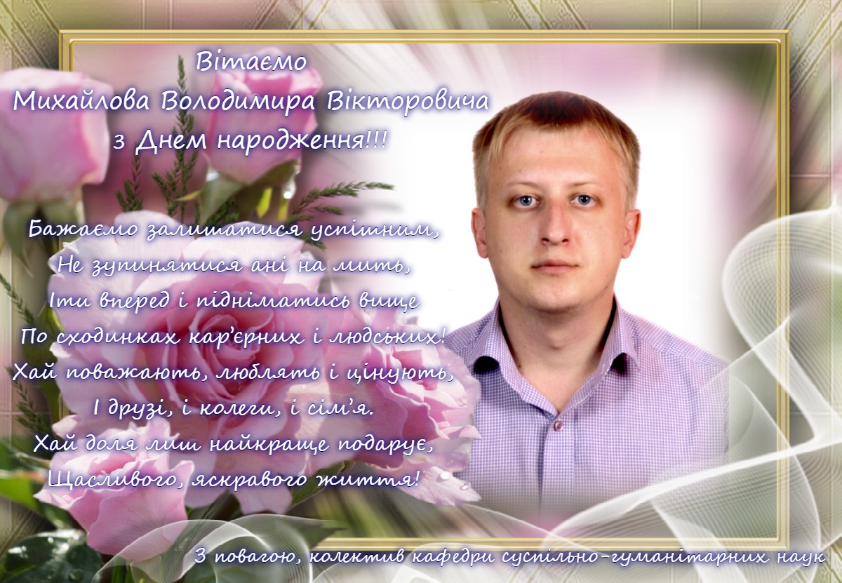 Вітаємо з Днем народження старшого викладача кафедри к.і.н. Михайлова Володимира Вікторовича! 11.08.2020