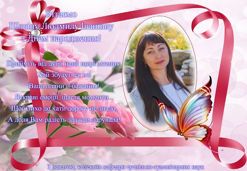 ВІТАЄМО З ДНЕМ НАРОДЖЕННЯ СТАРШОГО ВИКЛАДАЧА КАФЕДРИ ШЛЄІНУ ЛЮДМИЛУ ІВАНІВНУ!