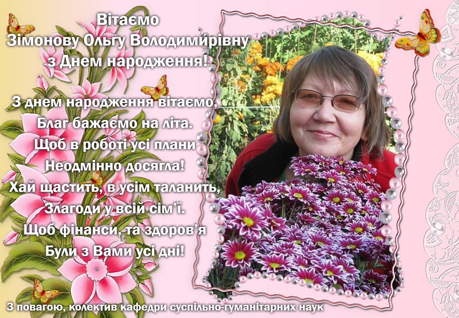 Вітаємо з Днем народження старшого викладача кафедри Зімонову Ольгу Володимирівну!