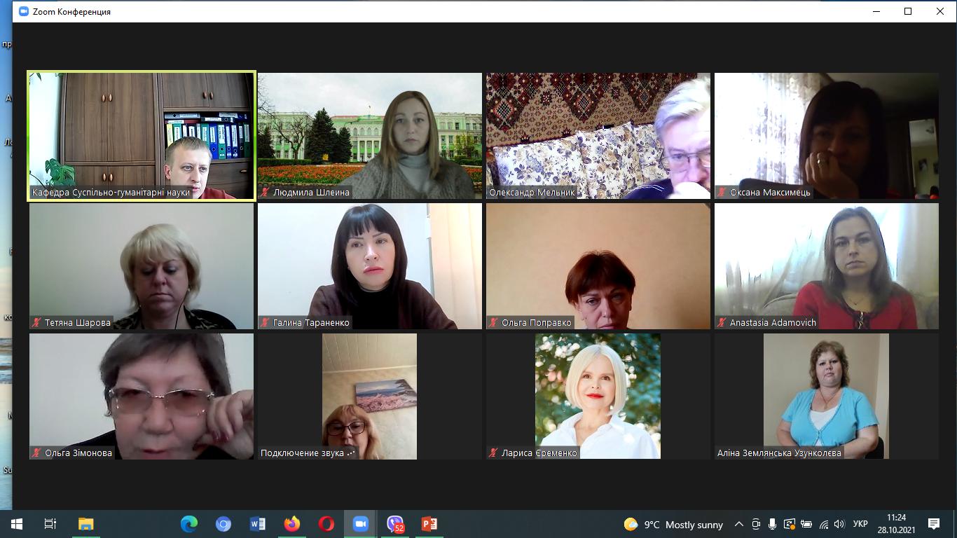 Відповідно до вимог сьогодення та необхідності організації подальшої навчальної та наукової роботи 28 жовтня було проведено on-line засідання кафедри суспільно-гуманітарних наук Таврійського державного агротехнологічного університету імені Дмитра Моторного. На зустрічі були присутні усі науково-педагогічні працівники. Кафедра продовжує проводити активну діяльність та налаштовувати ефективну роботу.