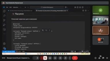 Головним спікером заходу став Василь Голубенко — Senior Solution Architect GlobalLogic, CTO ArtIntSol, фахівець з AI/CV/ML/Embedded solutions. Він поділився досвідом використання сучасних інструментів ШІ, які значно спрощують процес створення, редагування та візуального оформлення різноманітних документів.