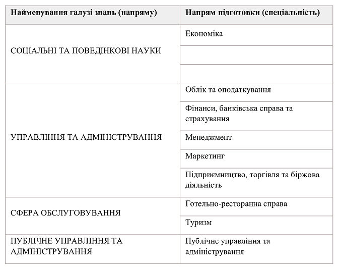 Перелік спеціальностей ТДАТУ, для вступу на які необхідні результати тесту ЗНО з української мови та літератури:
