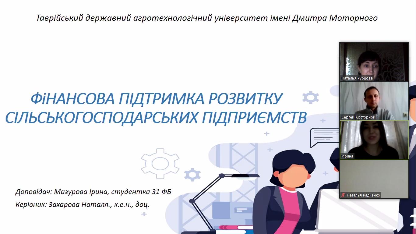 На кафедрі «Фінанси, банківська справа та страхування» на базі платформи ZOOM відбулося секційне засідання в рамках VІІ Всеукраїнської науково-технічної конференції студентів і магістрантів Таврійського державного агротехнологічного університету імені Дмитра Моторного.