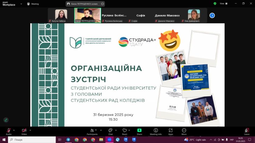 На базі Студентської ради Таврійського державного агротехнологічного університету імені Дмитра Моторного розпочалася нова сторінка у розвитку студентського самоврядування — започатковано комунікацію та співпрацю між Студентською радою університету та головами органів студентського самоврядування (ОСС) коледжів ТДАТУ.