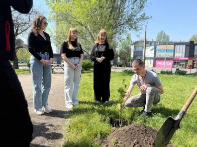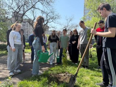 Учасники заходу спільно провели акцію з озеленення території, висадивши туї як символи єдності, сили та сталого розвитку. Від ТДАТУ одну з туй посадив Євген.