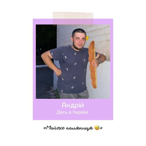 Голова нашої маленької сім‘ї Ірина також знаходиться у нашій любій Україні, а Андрій в свою чергу показує вам веселу «майже» патріотичну фотографію