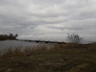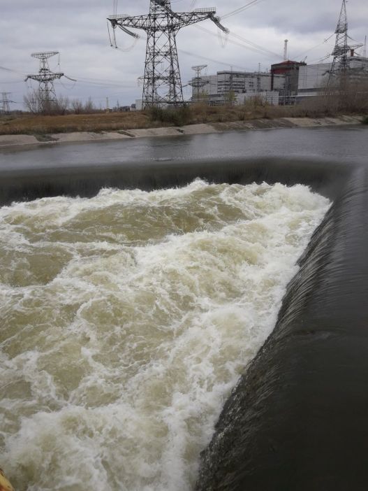 Для нормальної роботи реакторів потрібна велика кількість води, яку беруть з спеціально побудованого водоймища. Нам показали величезну систему охолодження води, яка складається з гідромодулів різної конструкції, градирень та системи каналів з водою, запас якої поповнюється з Каховського водосховища.