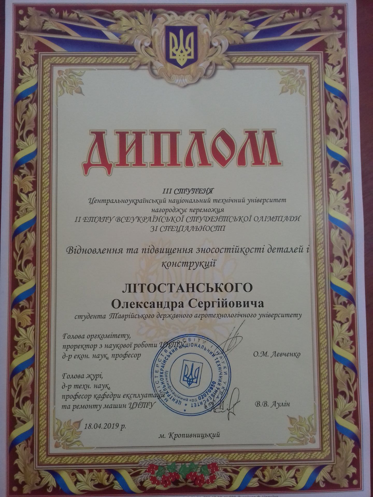 Студенти механіко-технологічного факультету – переможці Всеукраїнському конкурсі студентських наукових робіт та ІІ етапу Всеукраїнської студентської олімпіади