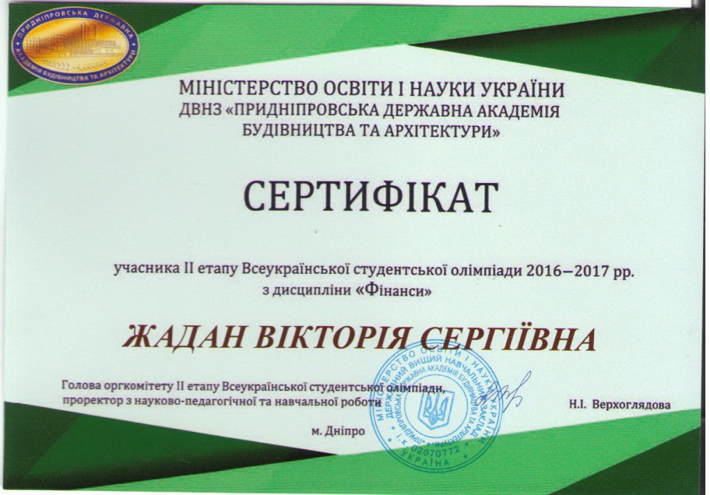 Сертифікат Жадан 2017