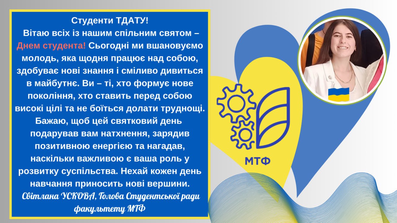 Студенти – особлива нація країни. Вітання студентських активістів ТДАТУ з нагоди Міжнародного дня студента
